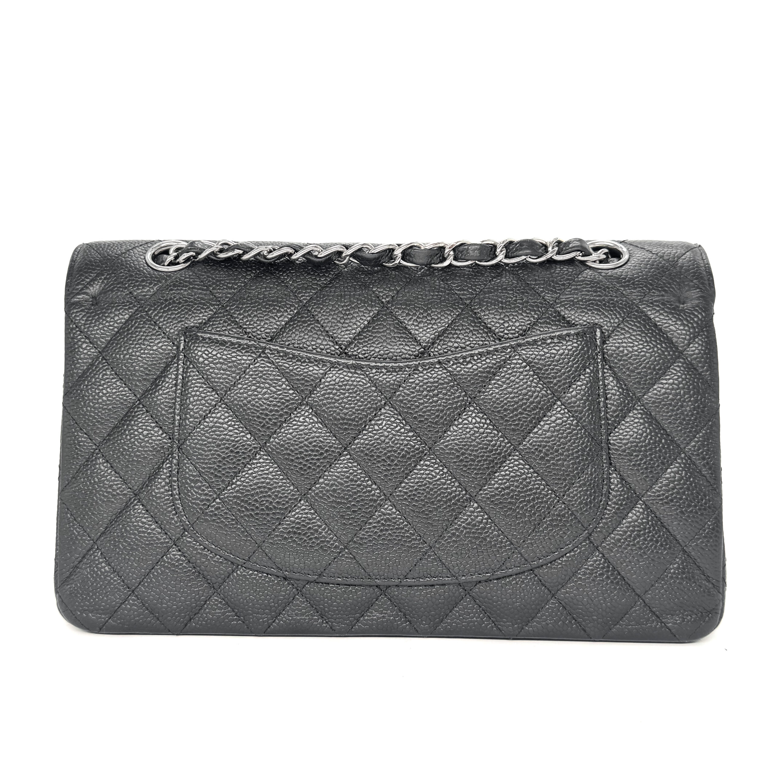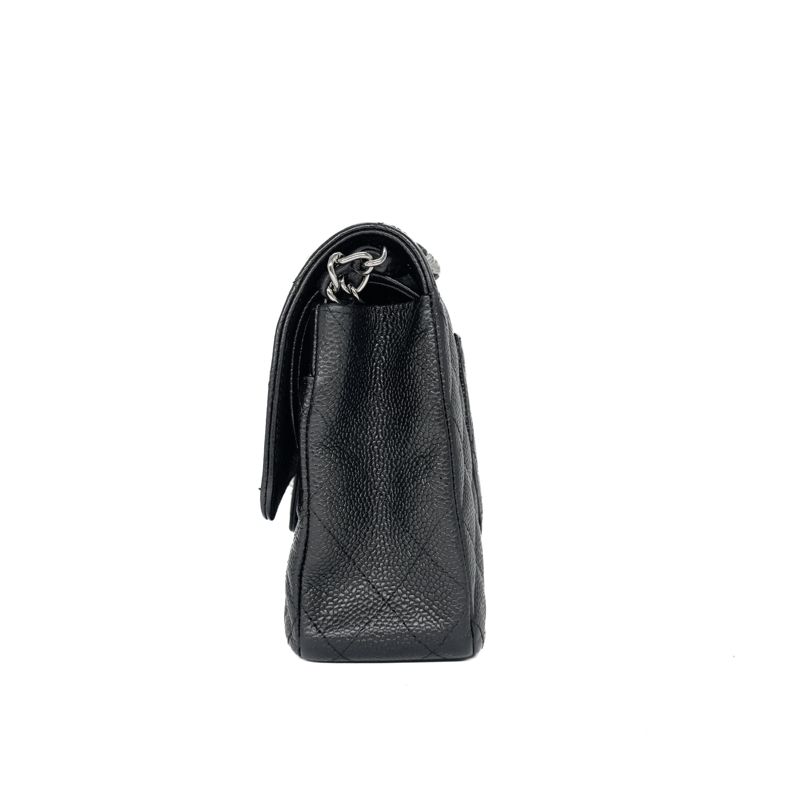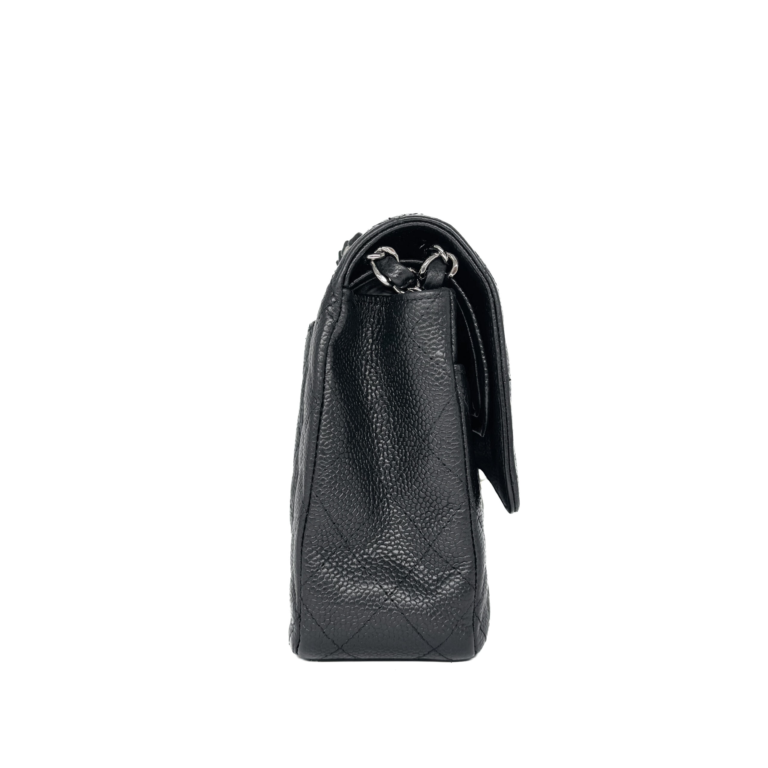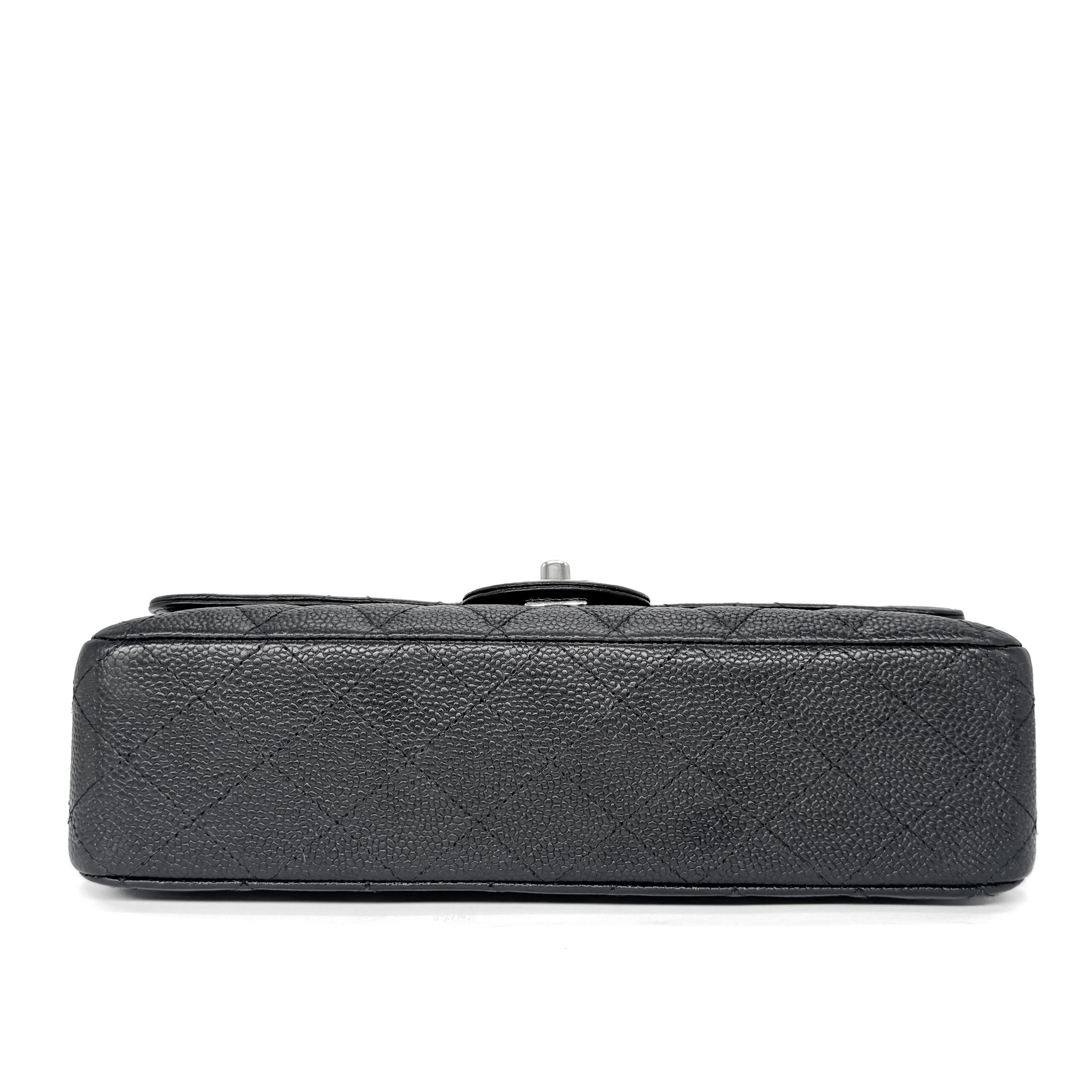 Tämä Chanel Classic Medium Black Caviar SHW on valmistettu merkin tunnusomaisesta Caviar-nahasta ja hopeanvärisistä metalliosista- klassikko, joka todella ilmentää ajatonta tyylikkyyttä.