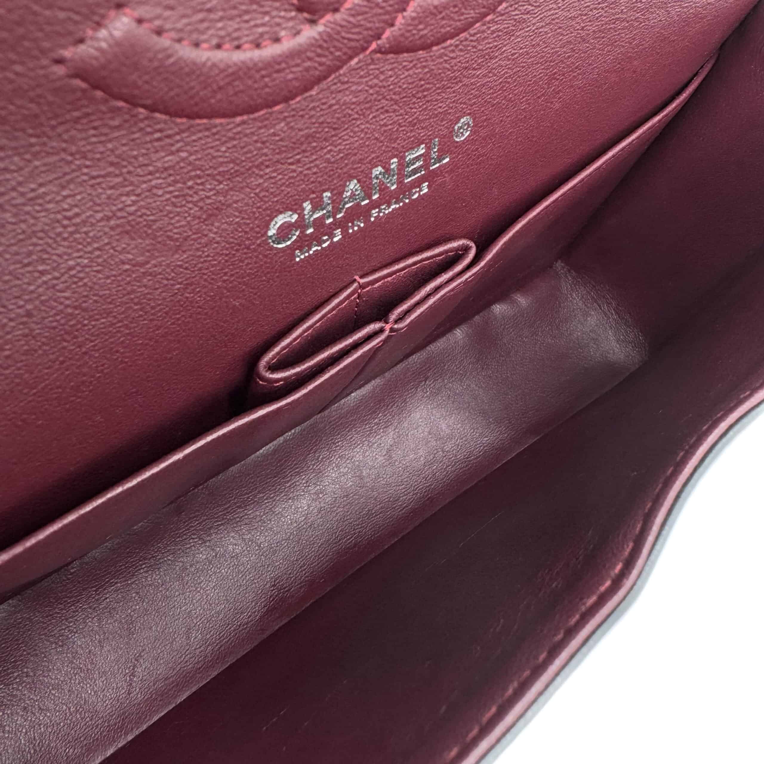 The Chanel 2.55 Flap also manifested two iconic Chanel handbag details: diamond-stitched quilting, and the deep burgundy hue of the interior lining. The straps on the first Flap Bags were entirely made of chain metal. When materials became scarce, however, Coco improvised by weaving leather into the chain to reduce the amount of metal needed.