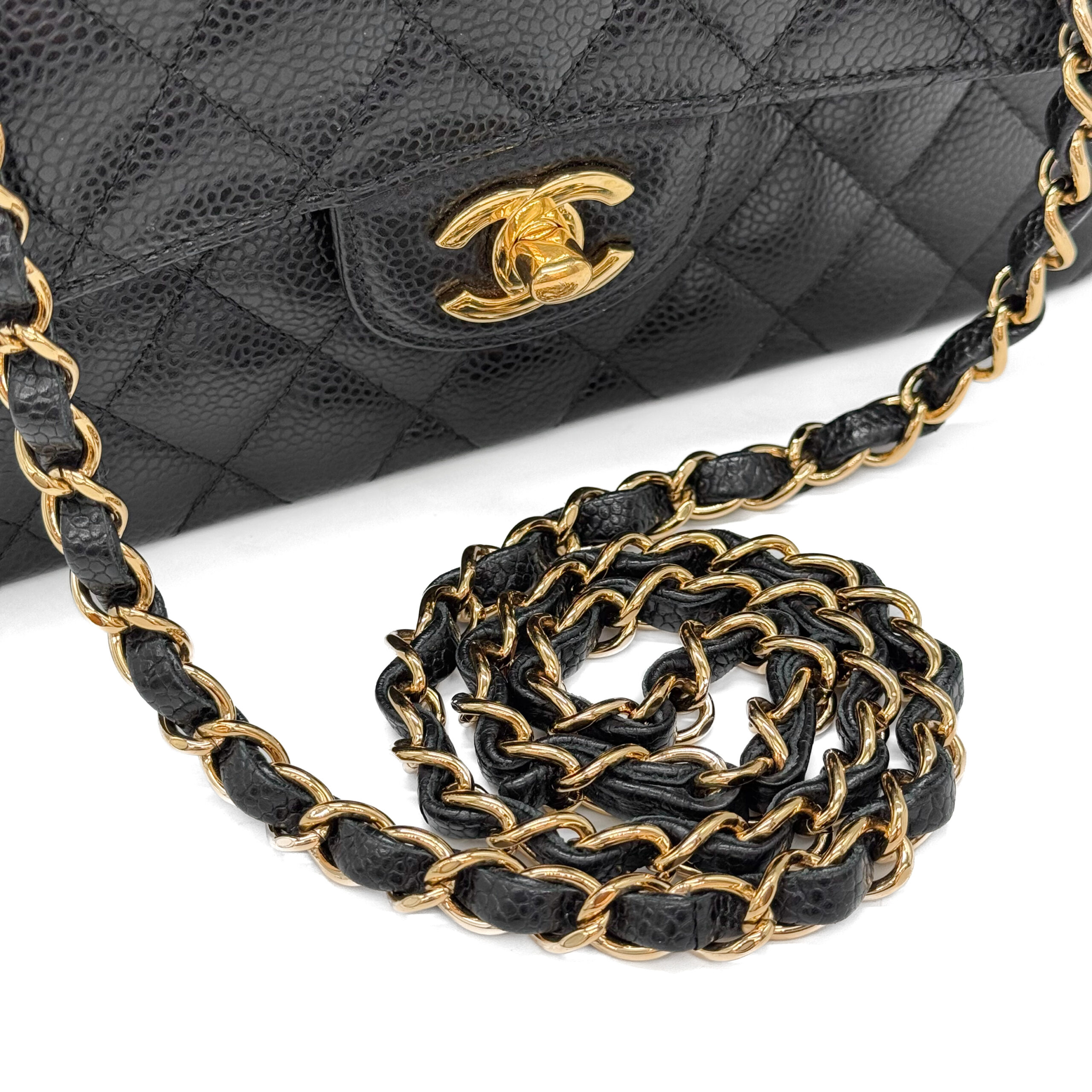 Beyond its aesthetic allure, one of the standout features of Chanel Caviar leather is its remarkable durability. Crafted from carefully selected calfskin, this leather undergoes a meticulous treatment process that renders it resistant to scratches and wear. The result is a handbag that not only looks exquisite but also stands the test of time. Chanel Caviar leather ensures that a Chanel accessory remains a cherished possession for years, if not generations, to come.Caviar leather will truly stand the test of time making it the perfect bag for fashionistas on-the-go. So, if you are looking for an everyday runaround bag, this Classic Caviar bag with its scratch and water-resistant surface couldn’t be more perfect.