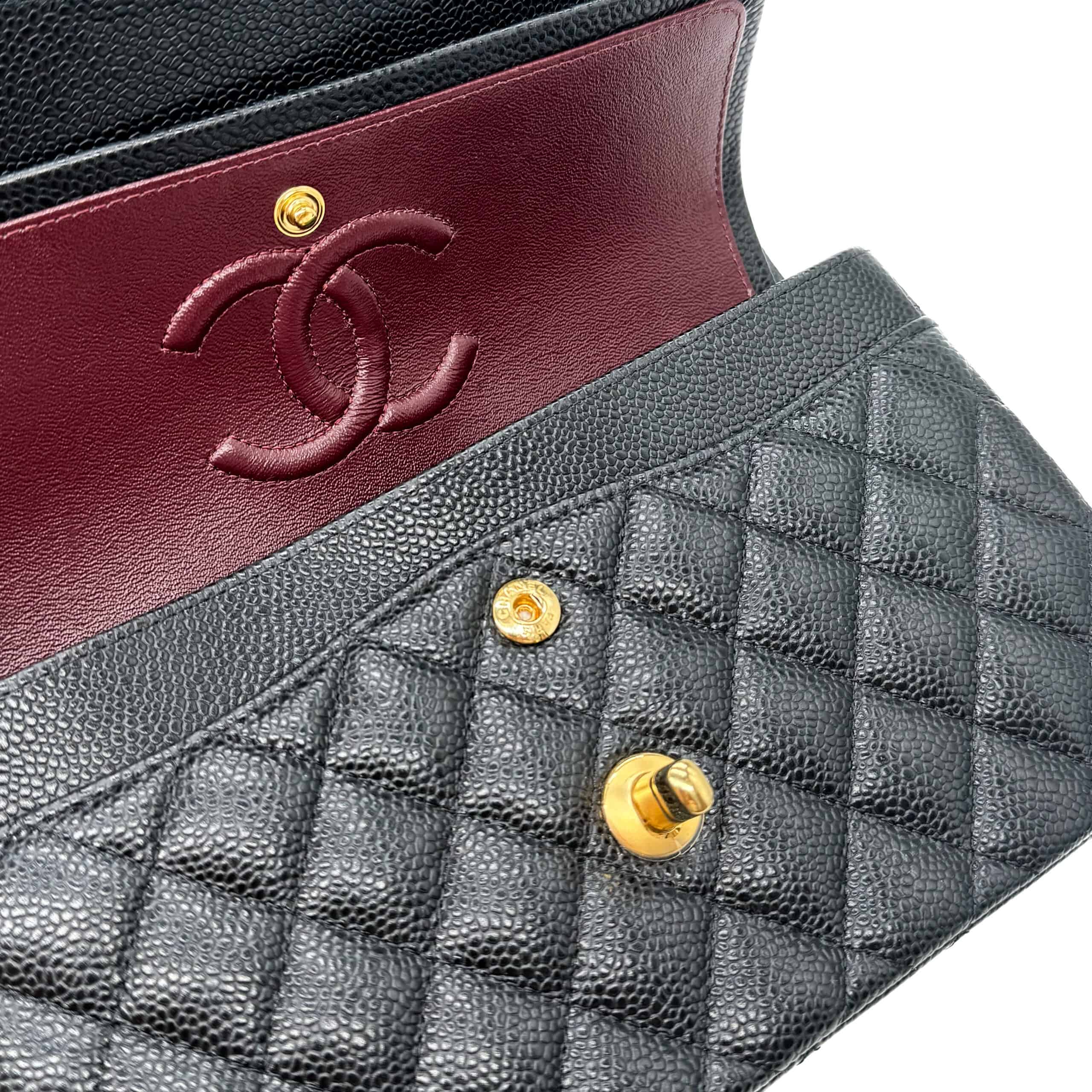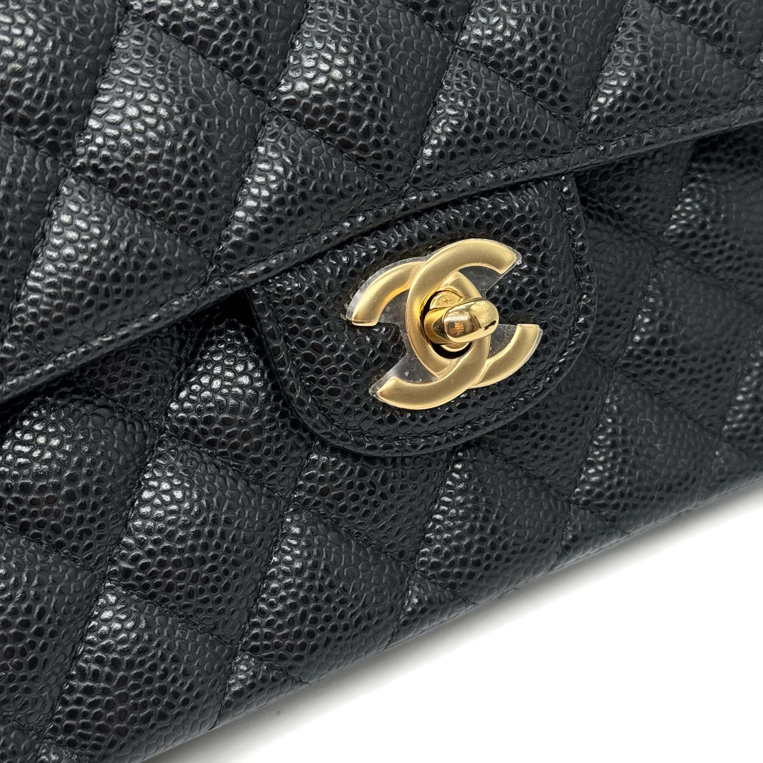 Beyond its aesthetic allure, one of the standout features of Chanel Caviar leather is its remarkable durability. Crafted from carefully selected calfskin, this leather undergoes a meticulous treatment process that renders it resistant to scratches and wear. The result is a handbag that not only looks exquisite but also stands the test of time. Chanel Caviar leather ensures that a Chanel accessory remains a cherished possession for years, if not generations, to come.Caviar leather will truly stand the test of time making it the perfect bag for fashionistas on-the-go. So, if you are looking for an everyday runaround bag, this Classic Caviar bag with its scratch and water-resistant surface couldn’t be more perfect.