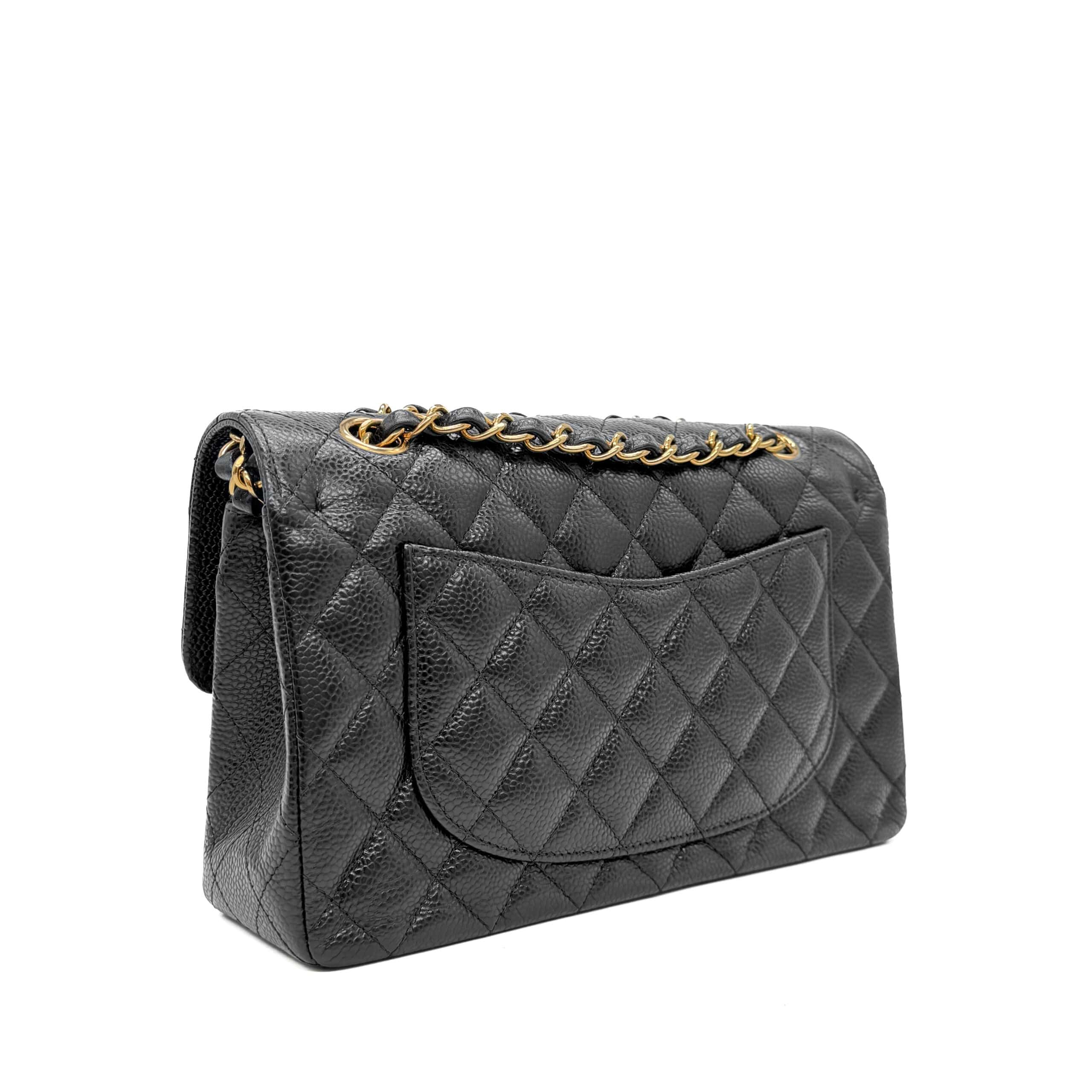 This Chanel Classic Small Black Caviar GHW is of black Caviar leather. Caviar Leather is the most highly coveted of all Chanel leathers, and hence tends to hold the highest resale value. It is made from pebbled calfskin. Chanel Caviar leather is renowned for its sumptuous appearance, characterized by a grainy texture that exudes opulence. The finely pebbled surface creates a visually pleasing and tactilely satisfying experience, adding a layer of luxury to the overall design. This distinctive texture is a testament to Chanel’s dedication to delivering the utmost in sophistication and refinement.