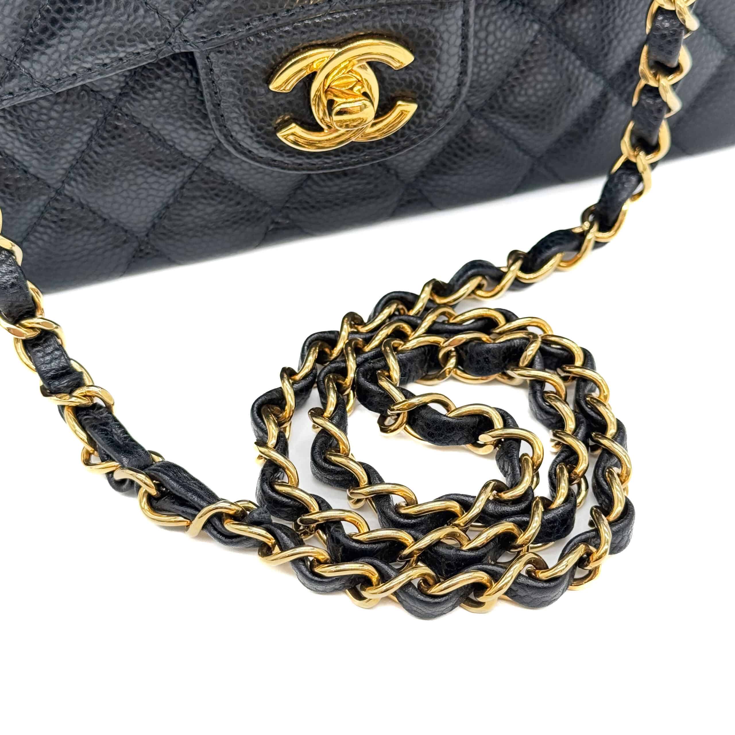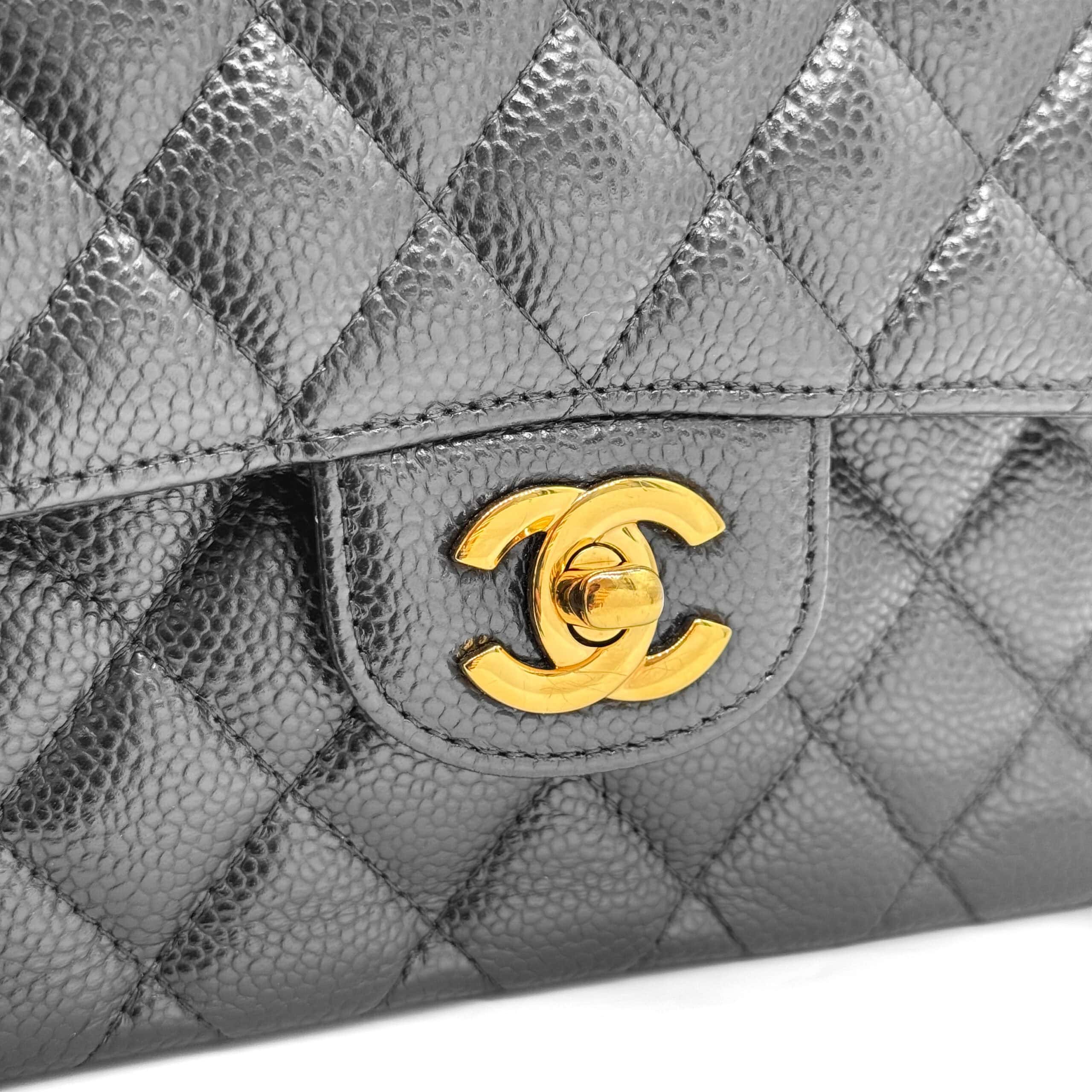Beyond its aesthetic allure, one of the standout features of Chanel Caviar leather is its remarkable durability. Crafted from carefully selected calfskin, this leather undergoes a meticulous treatment process that renders it resistant to scratches and wear. The result is a handbag that not only looks exquisite but also stands the test of time. Chanel Caviar leather ensures that a Chanel accessory remains a cherished possession for years, if not generations, to come.Caviar leather will truly stand the test of time making it the perfect bag for fashionistas on-the-go. So, if you are looking for an everyday runaround bag, this Classic Caviar bag with its scratch and water-resistant surface couldn’t be more perfect.