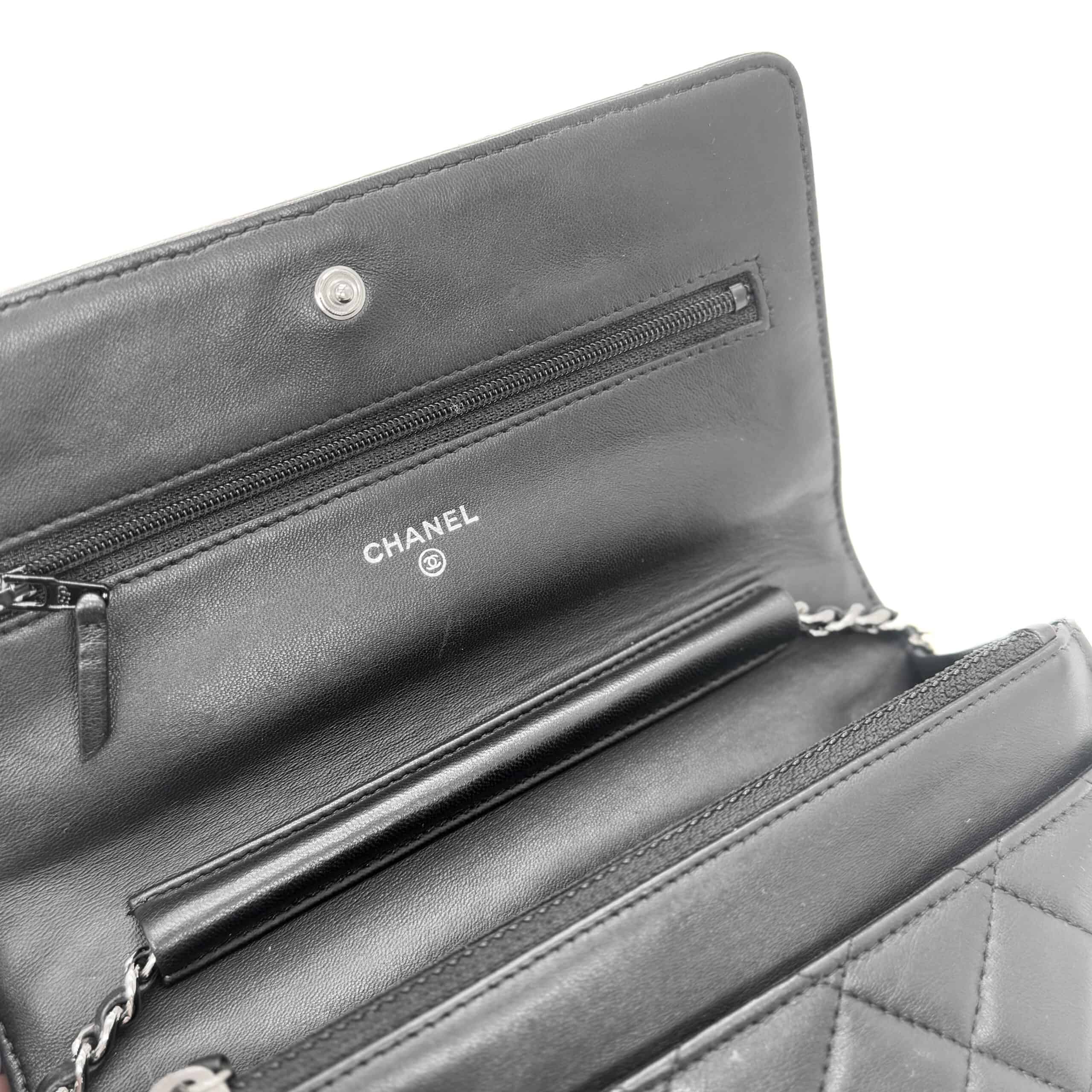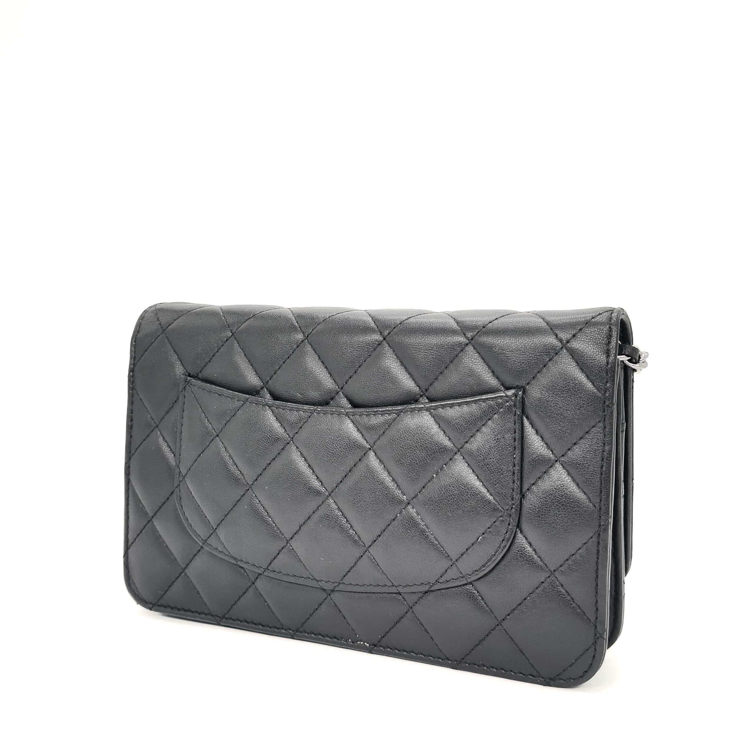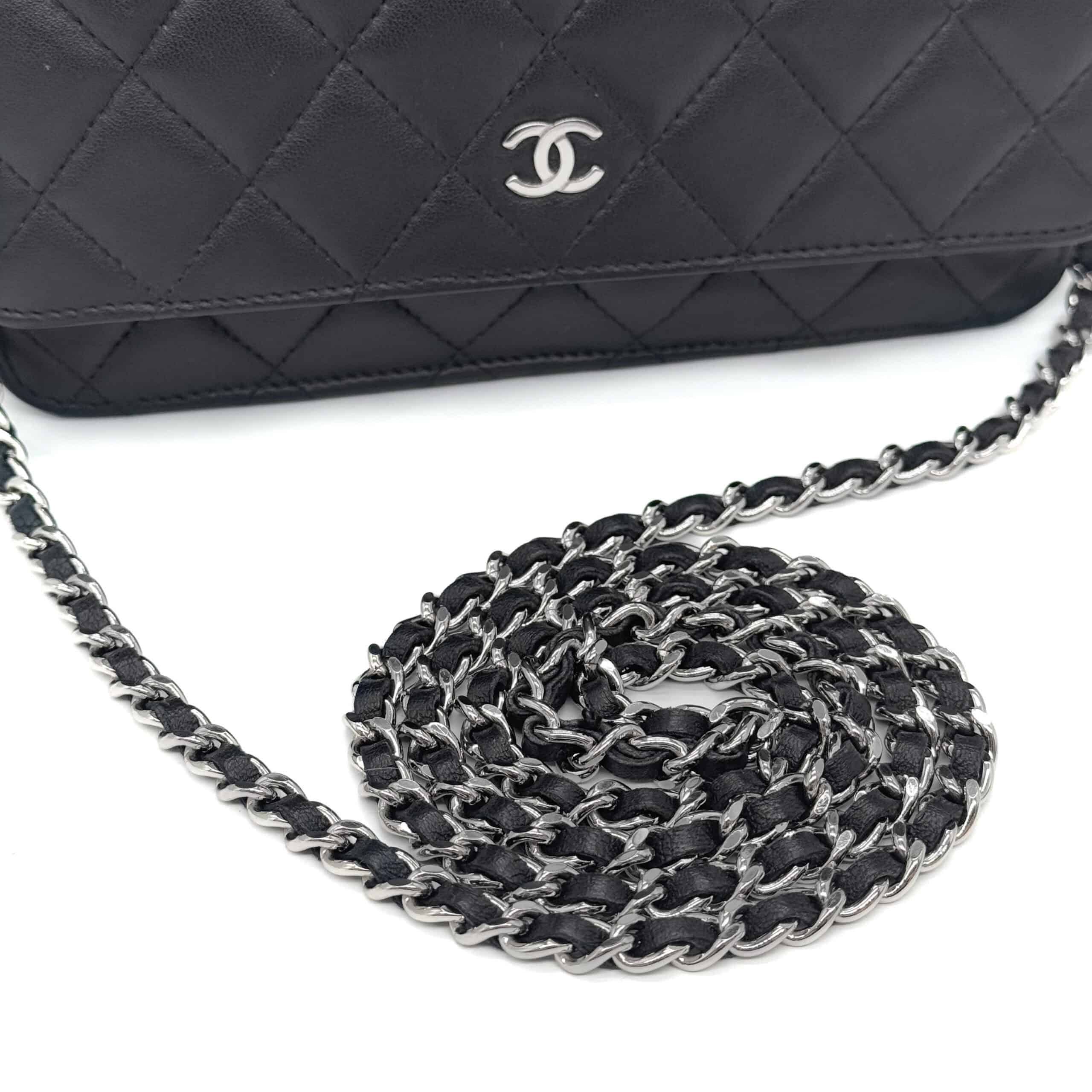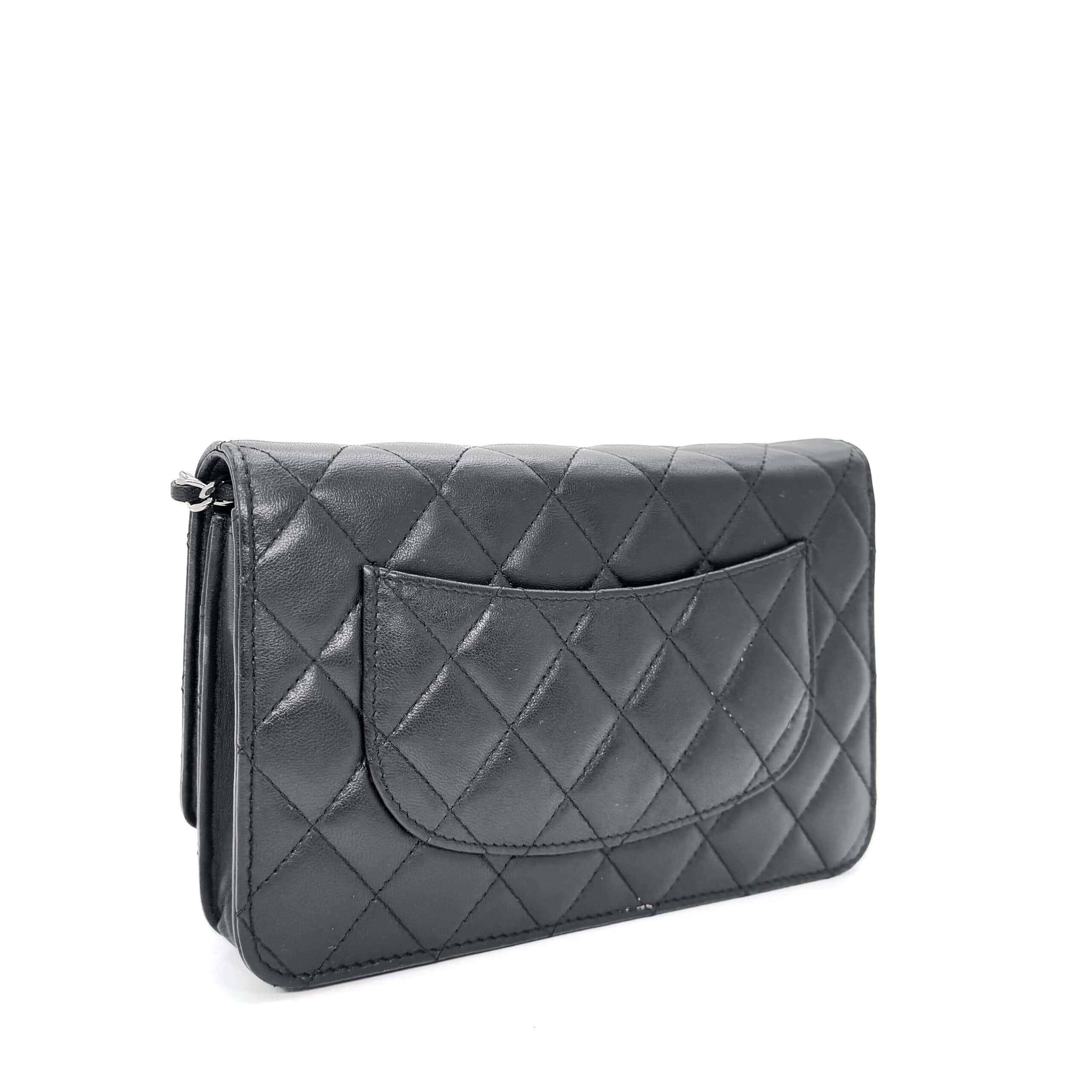 This most popular Chanel Classic Wallet-on-chain is made of black lambskin leather and silvertone hardware. It is in very good condition with minor signs of wear and comes with Chanel authenticity card and Entrupy authenticity certificate.