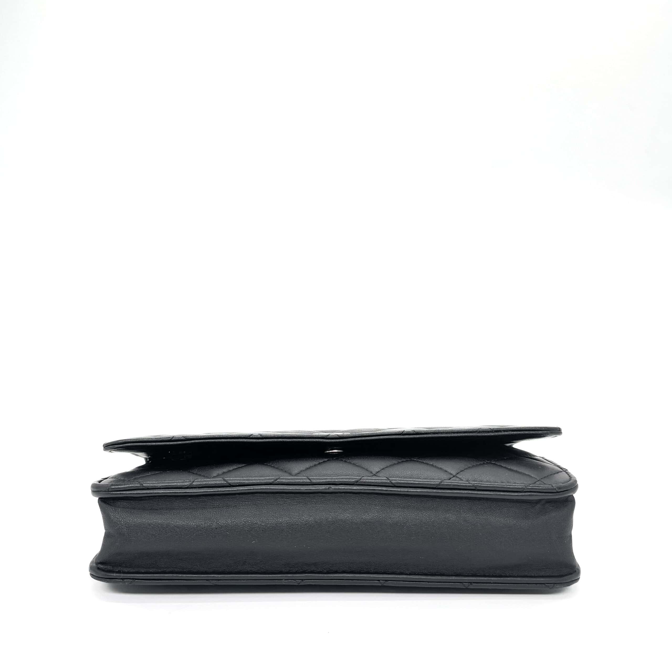 This Classic WOC features many recognisable Chanel characteristics – the flap which folds over the front of the bag, a small CC emblem and the signature diamond quilted leather. The WOC also has the signature interwoven silver tone chain link and black leather shoulder strap. The adjustable strap allows the bag to be worn crossbody on the shoulder or even as a clutch with the strap stored entirely inside the bag.
