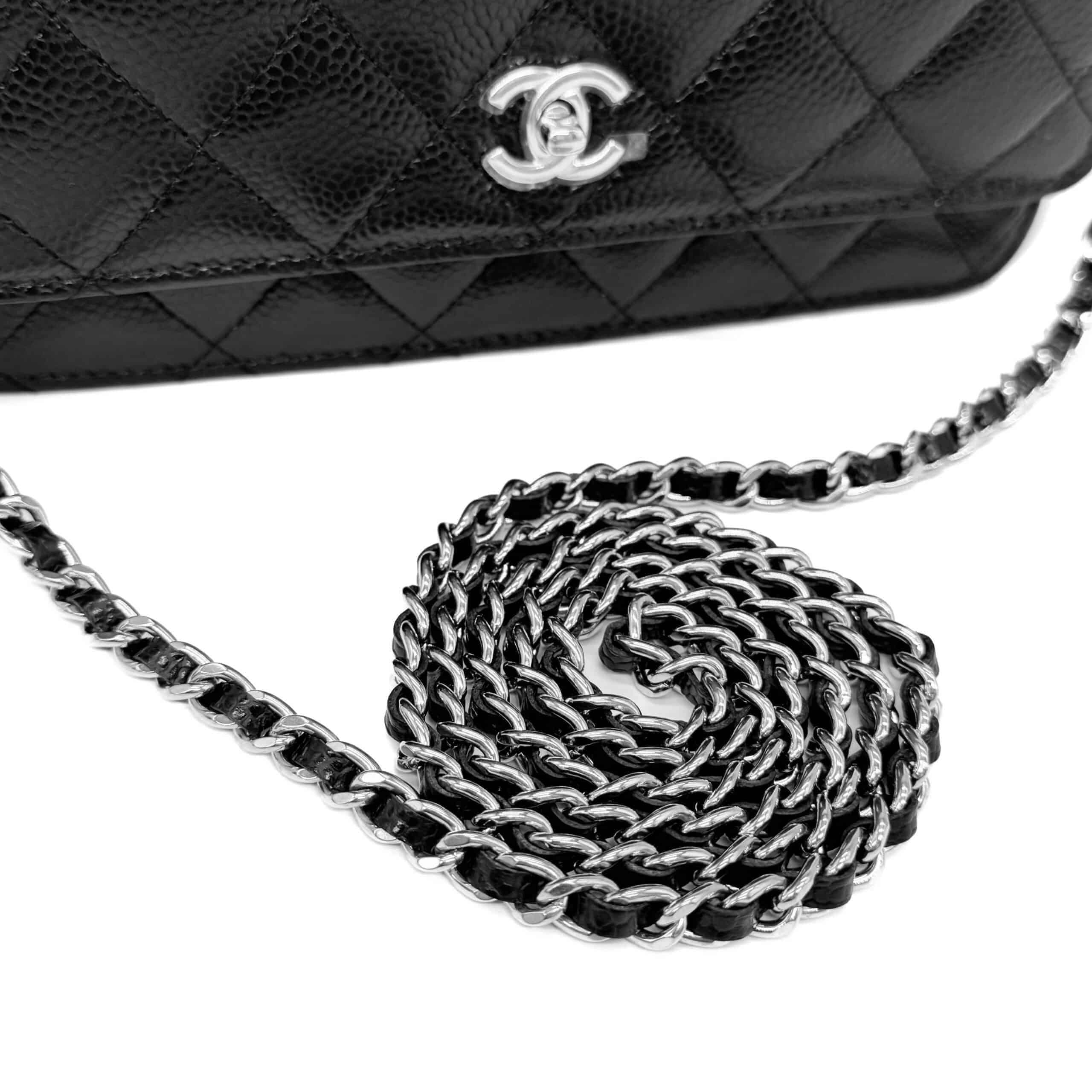 A timeless icon in the world of fashion, the Chanel Classic WOC Black Caviar SHW is a piece that blends elegance and functionality in a compact silhouette. Featuring Chanel’s unmistakable chain strap and purse-style structure, this latest edition now shines with refined silver-toned hardware — adding a cool, contemporary edge to the house’s signature design. It includes the CC turnlock introduced to WOC models in 2025, lending a modern touch to a heritage piece.