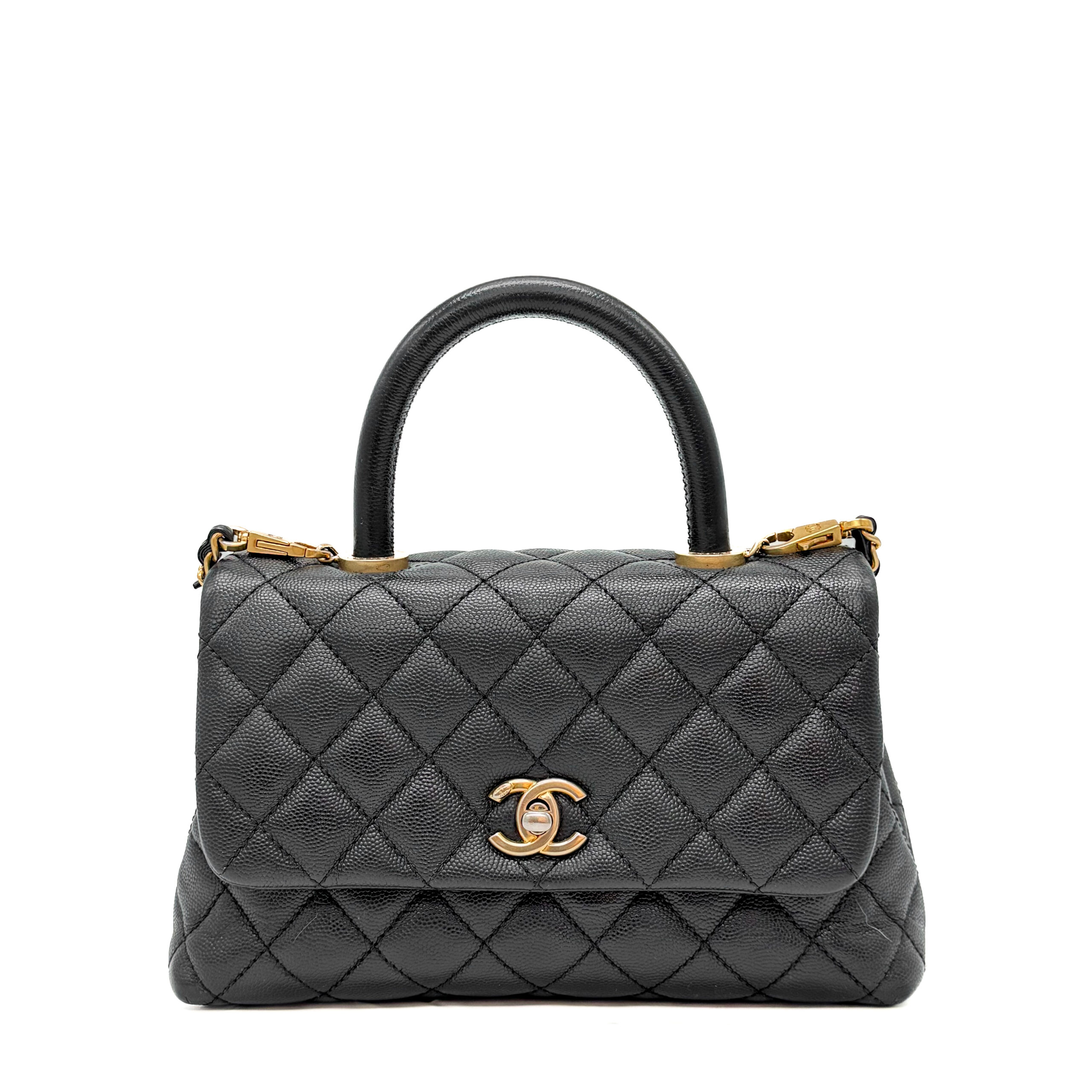 The Chanel Coco Handle bags are usually made in Chanel Caviar leather. However due to their popularity, they now come in various colours and material- you can find out more of our Cocos here.