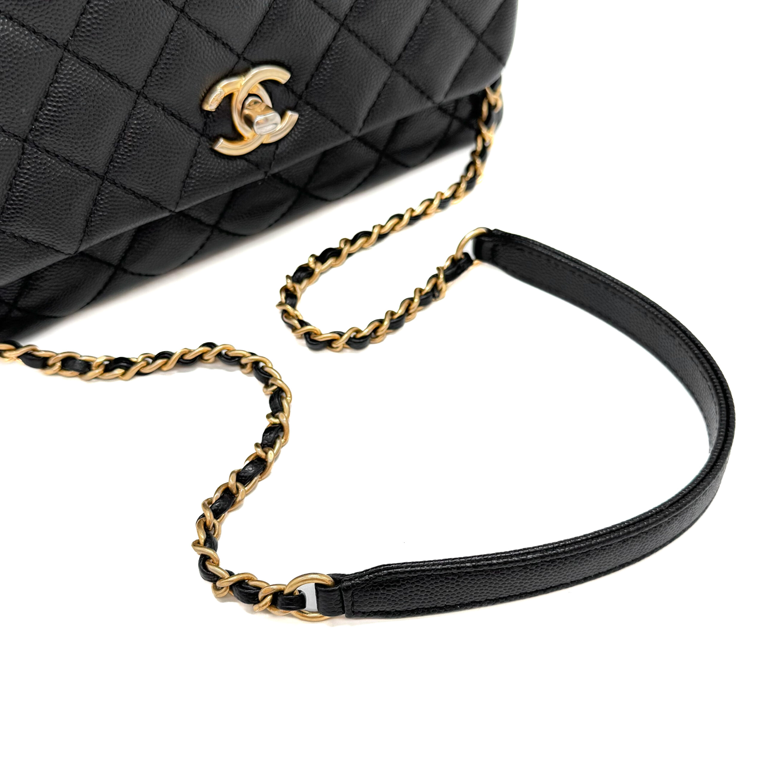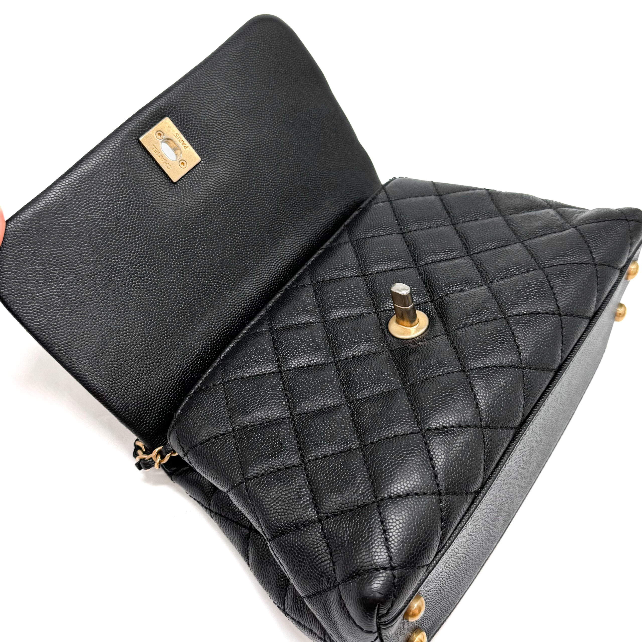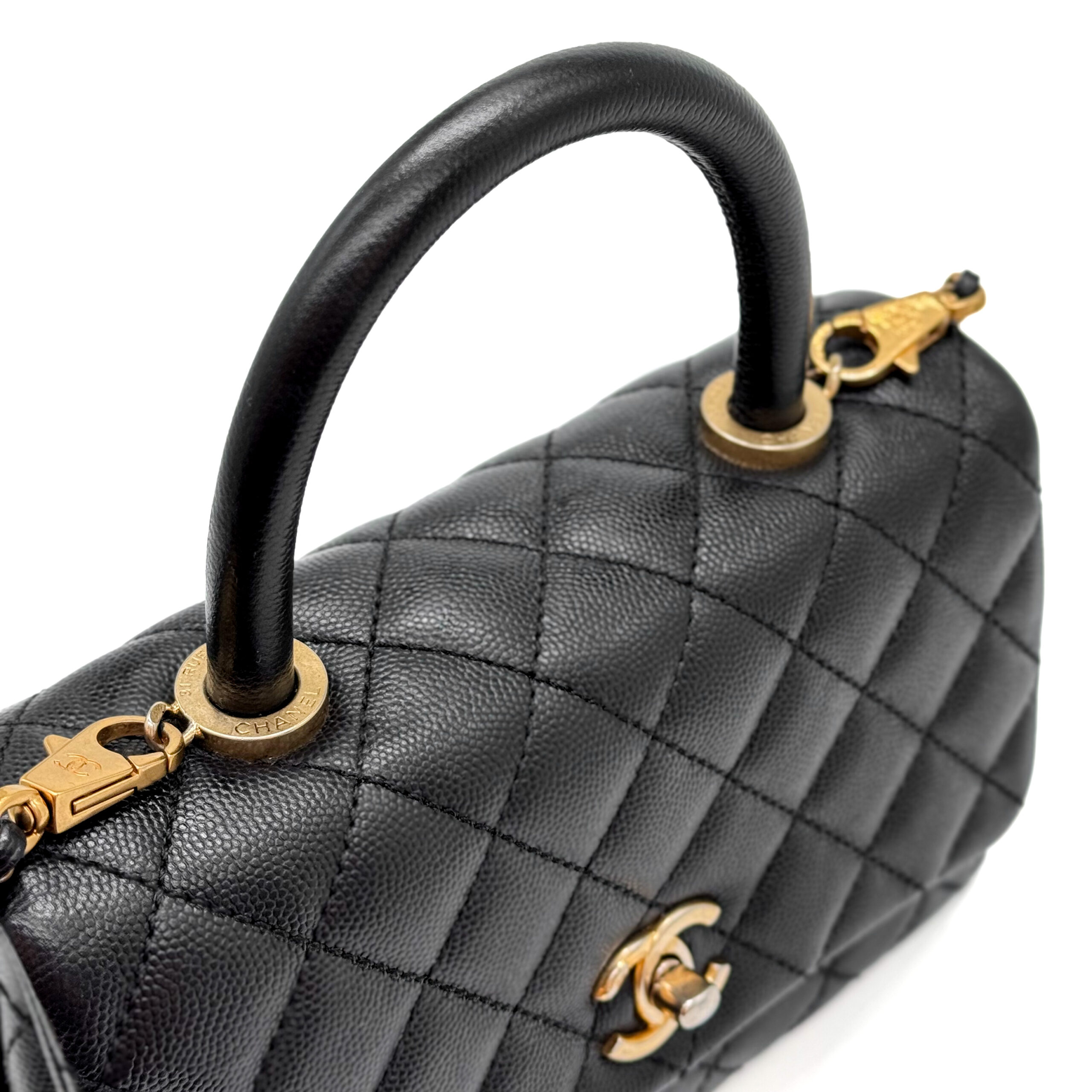 Chanel Coco Handle Small Black Caviar CGHW in a very good condition. Some metal parts have slight discolouration (visible on the photos). The interior is clean. Chanel box and card are included.