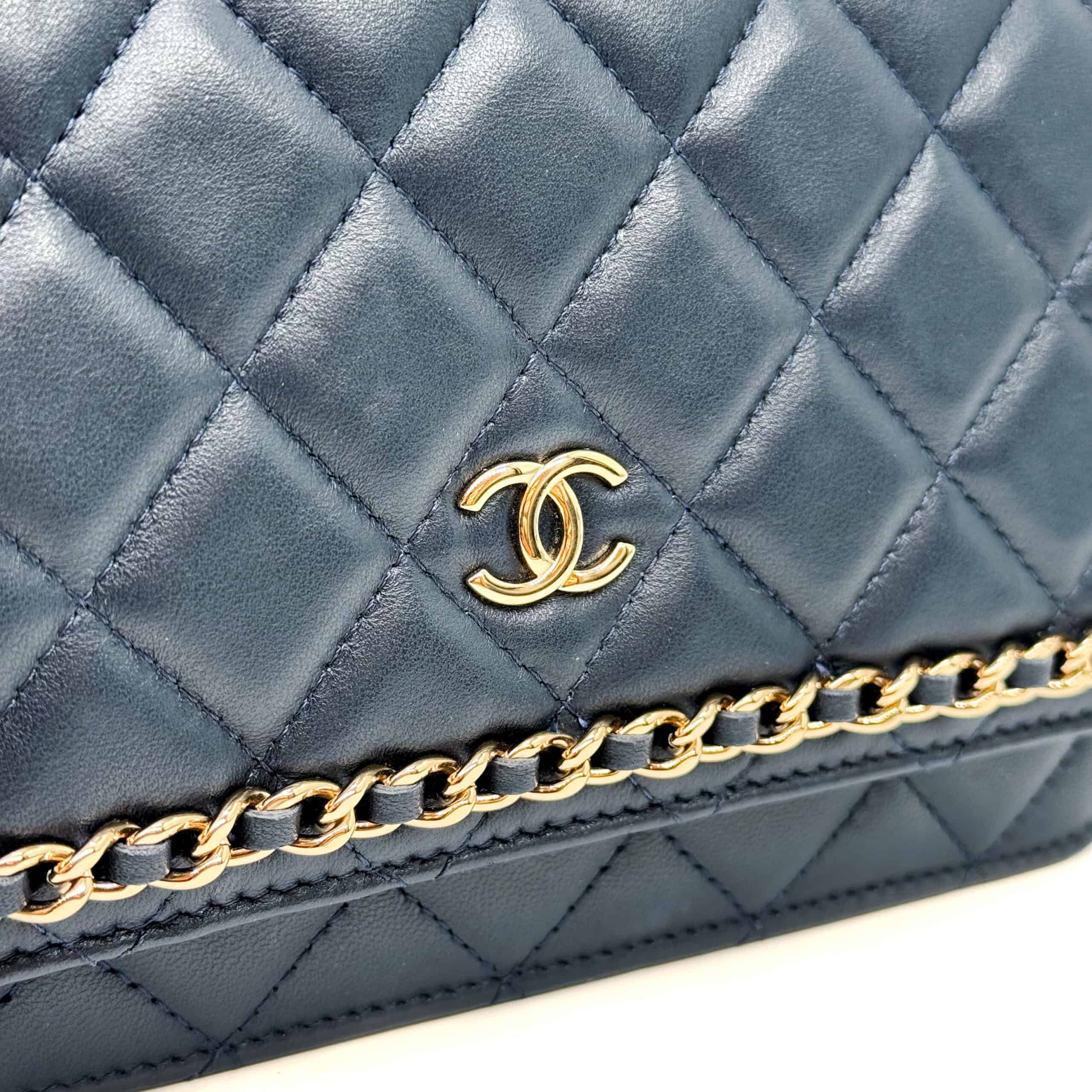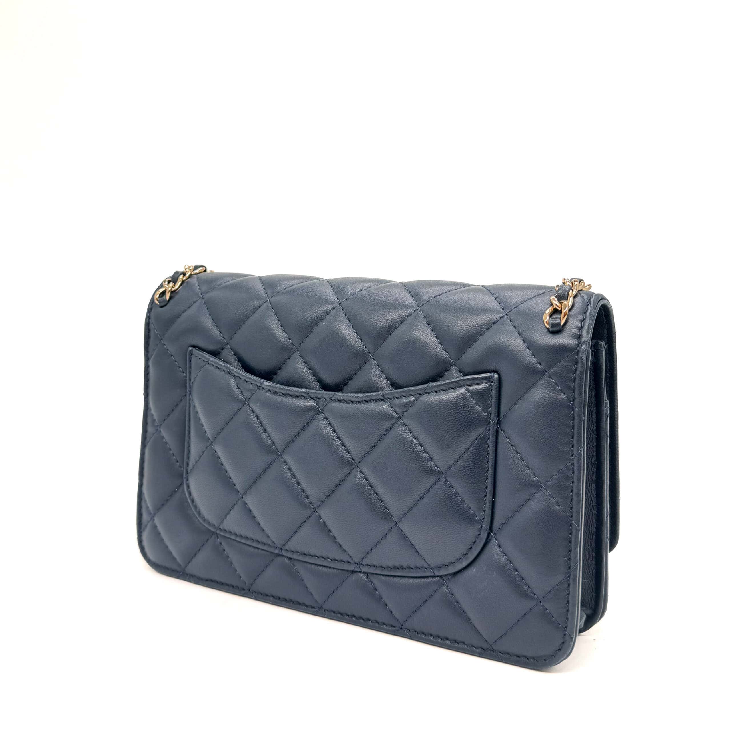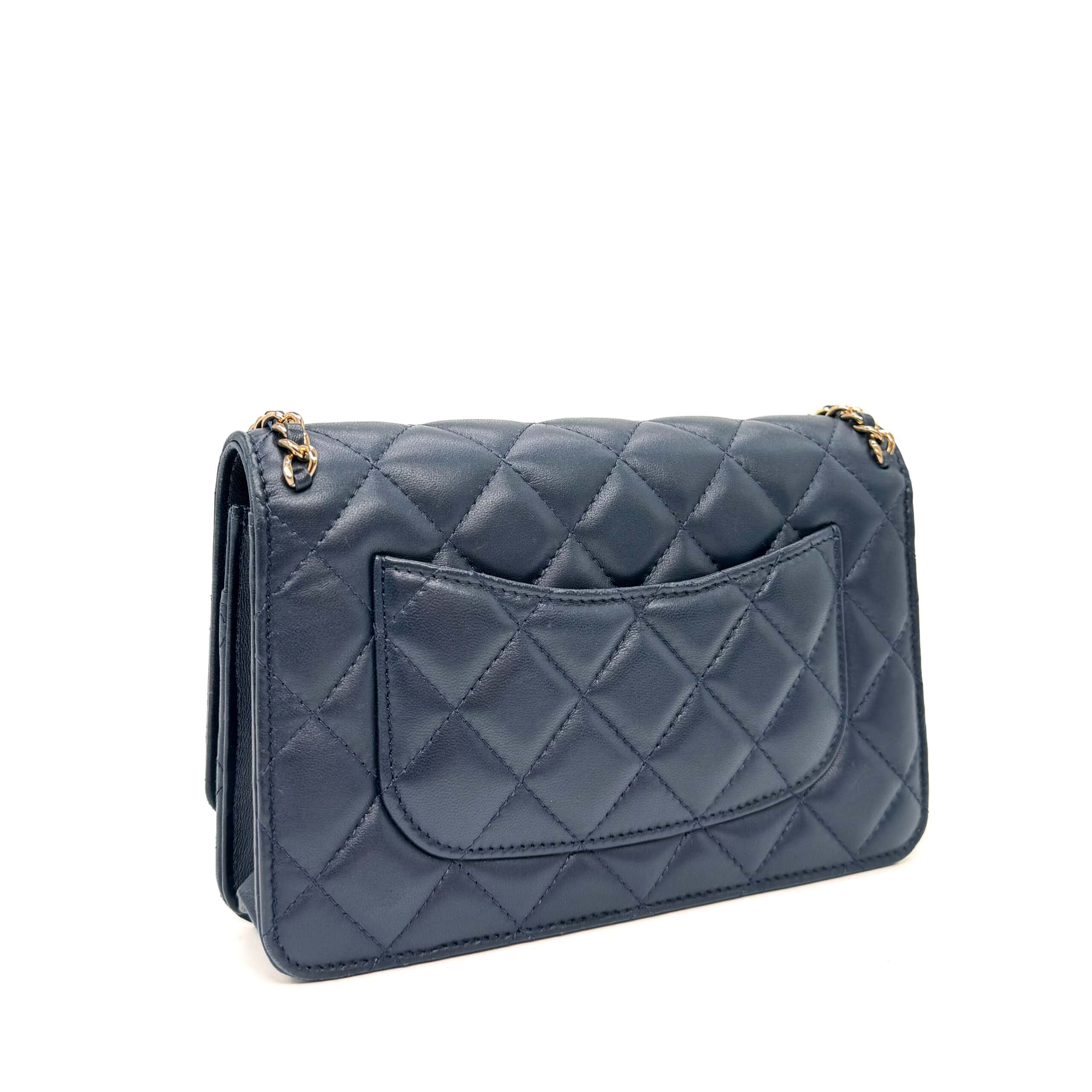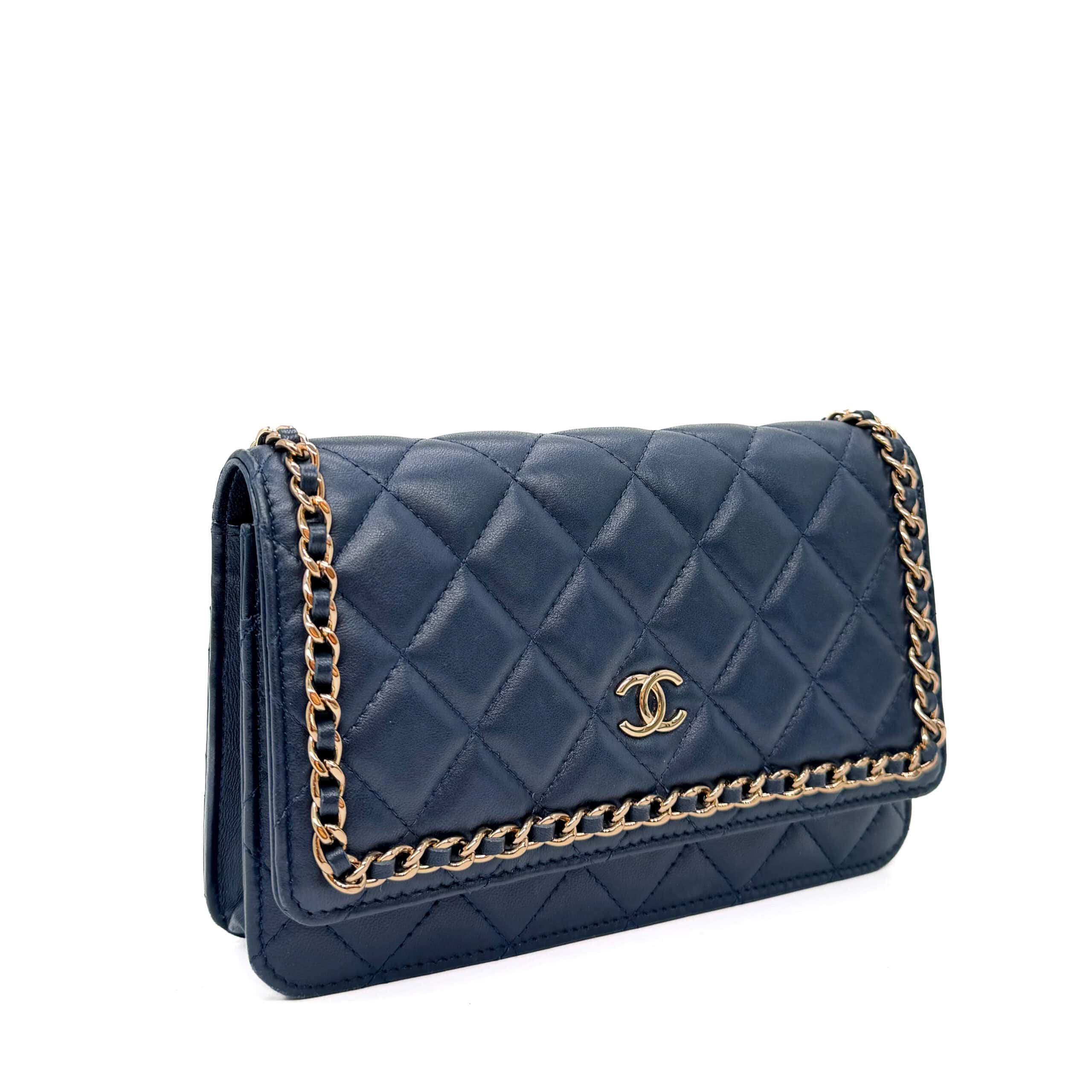 Crafted in Lambskin leather, this Chanel WOC Lambskin Navy GHW has a truly luxurious feel. Being almost velvet-like to the touch, with a soft, rich sheen, Chanel Lambskin is notably one of the most popular choices out of all the skins. The bag features a gold-tone chain detail on the front.
