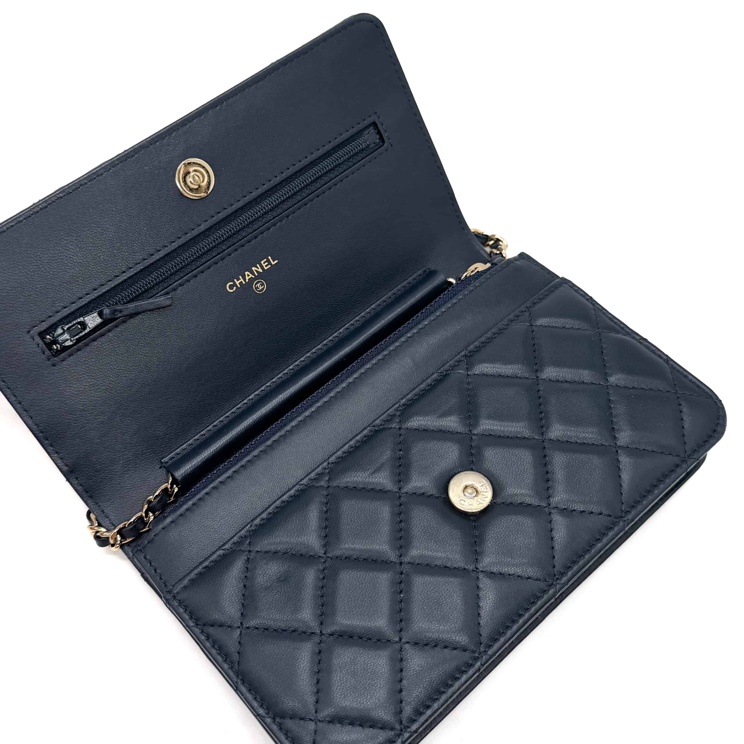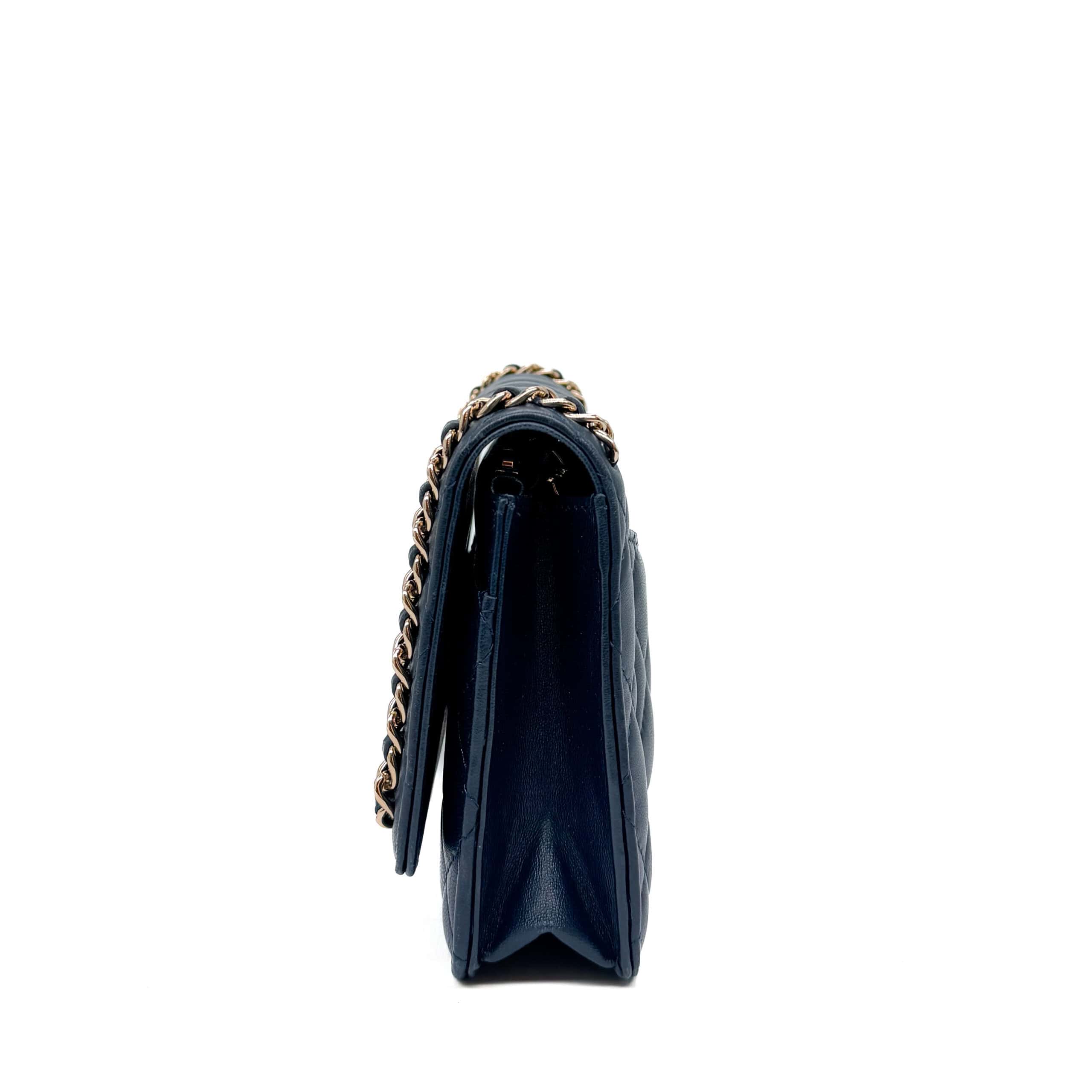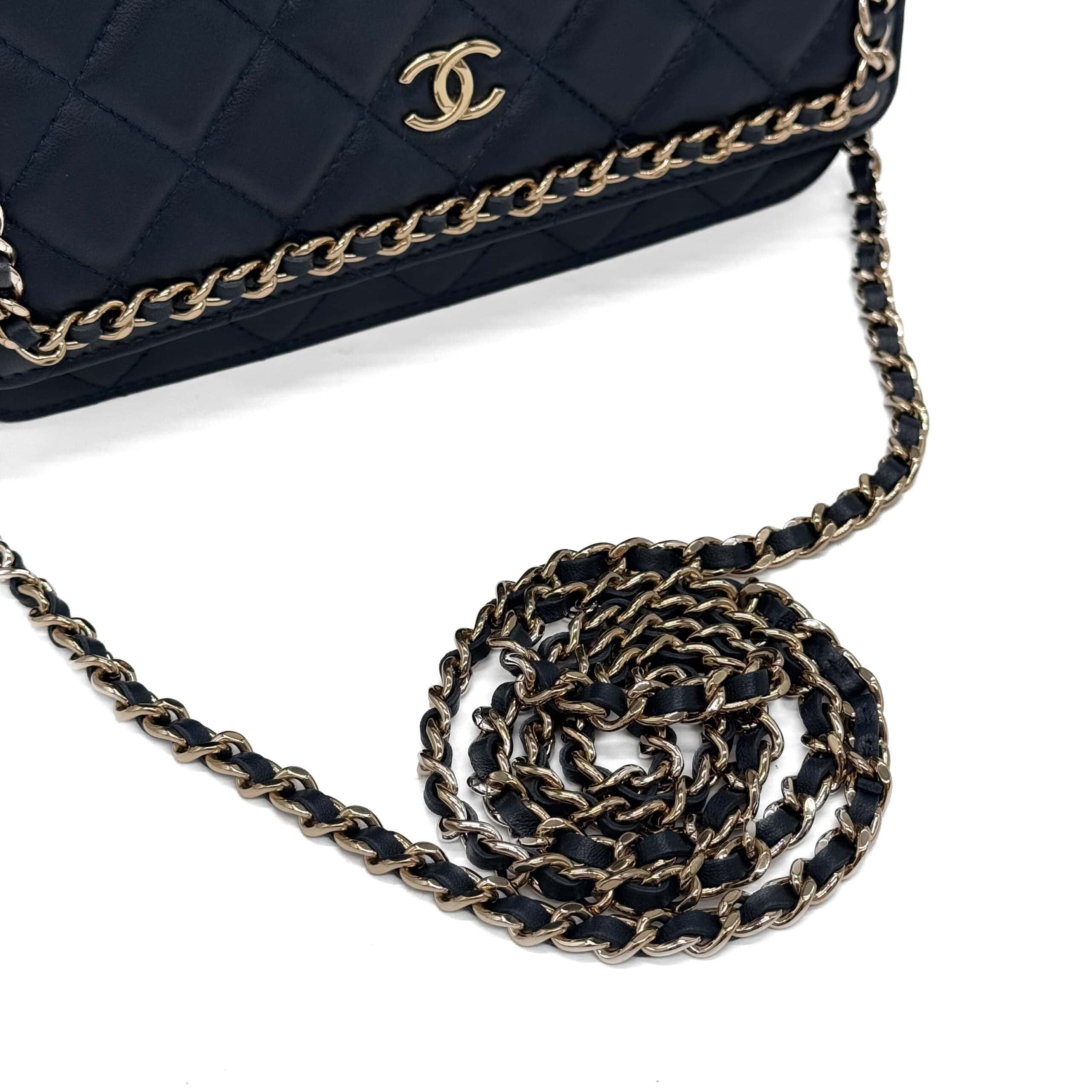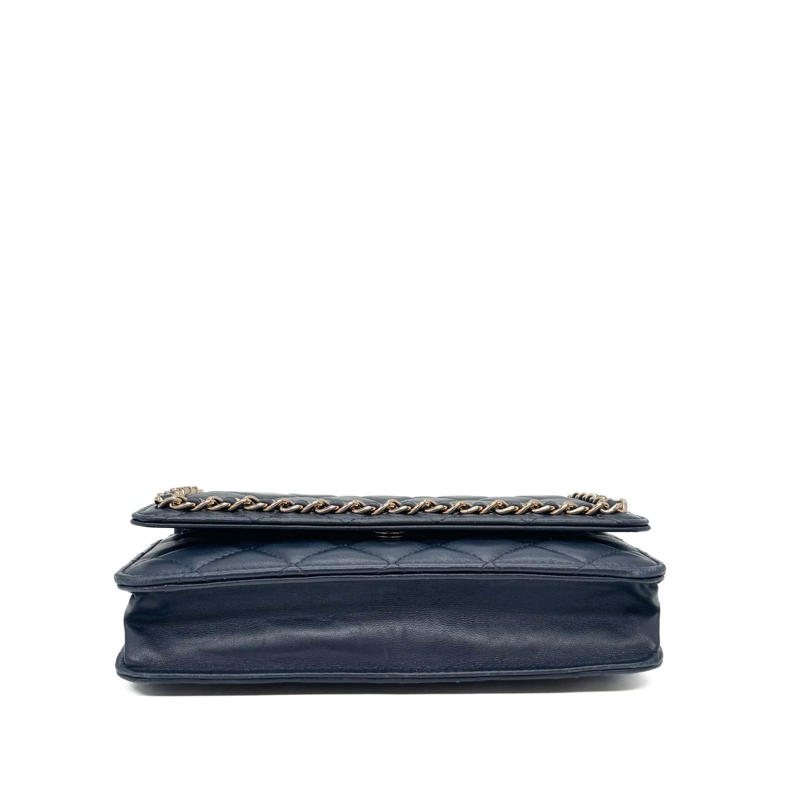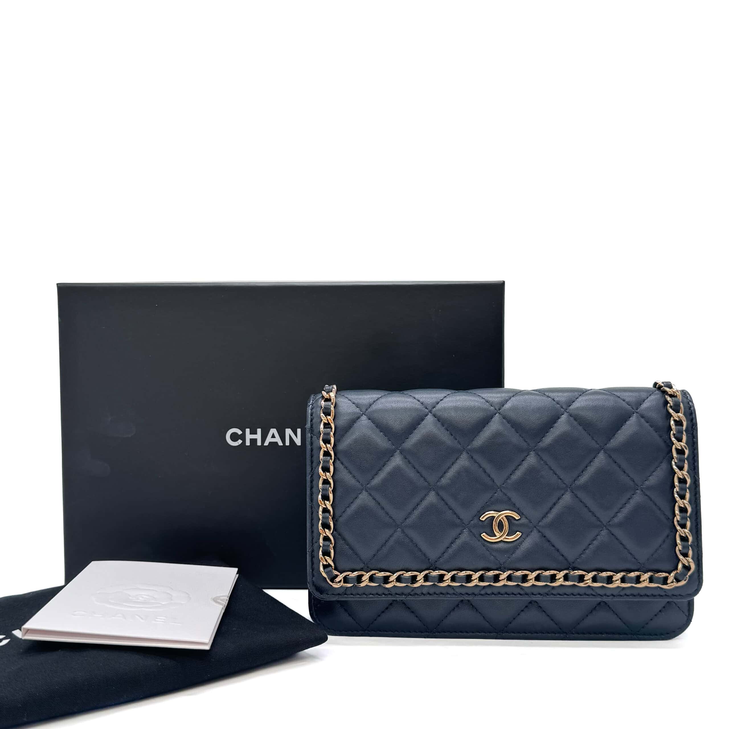 Crafted in Lambskin leather, this Chanel WOC Lambskin Navy GHW has a truly luxurious feel. Being almost velvet-like to the touch, with a soft, rich sheen, Chanel Lambskin is notably one of the most popular choices out of all the skins. The bag features a gold-tone chain detail on the front.