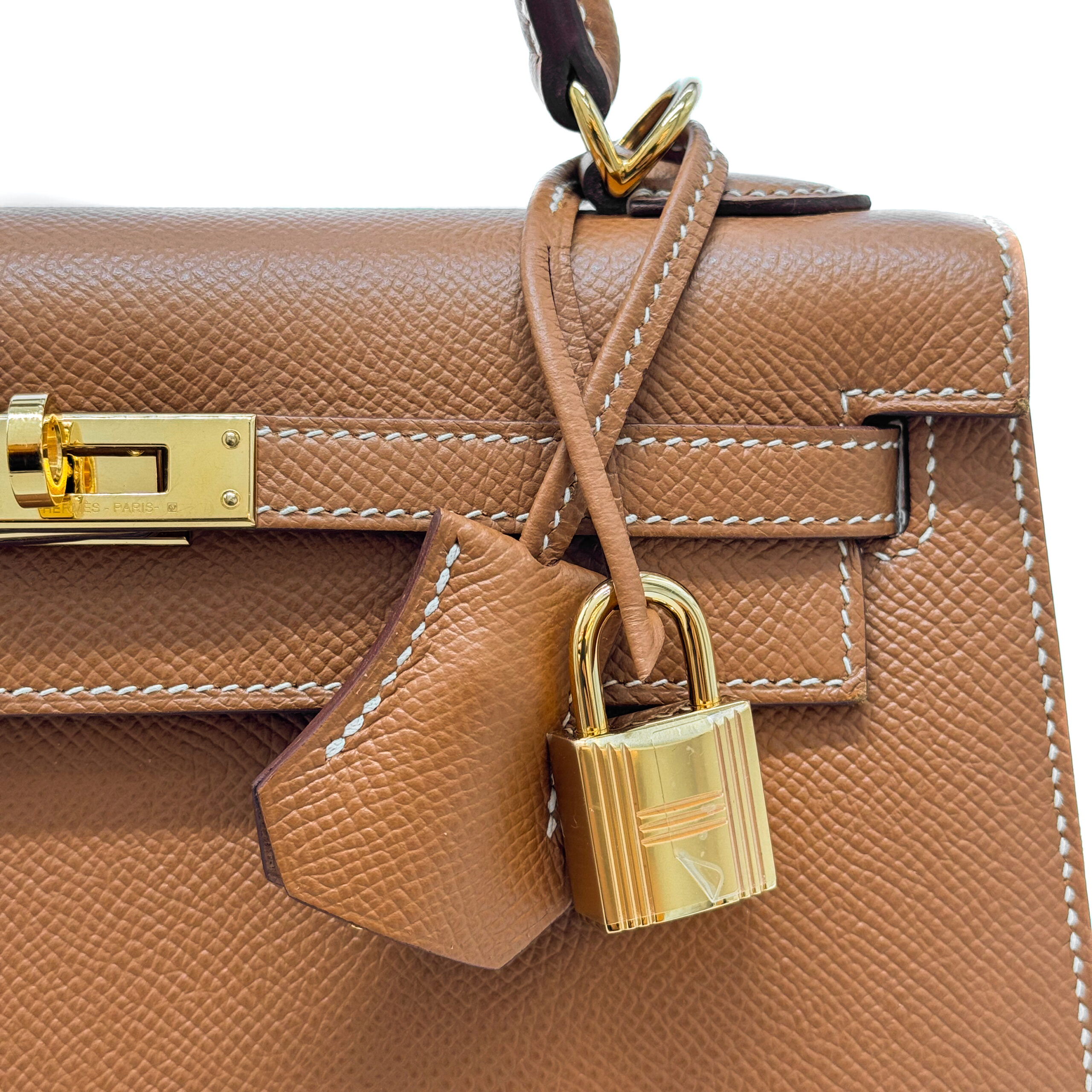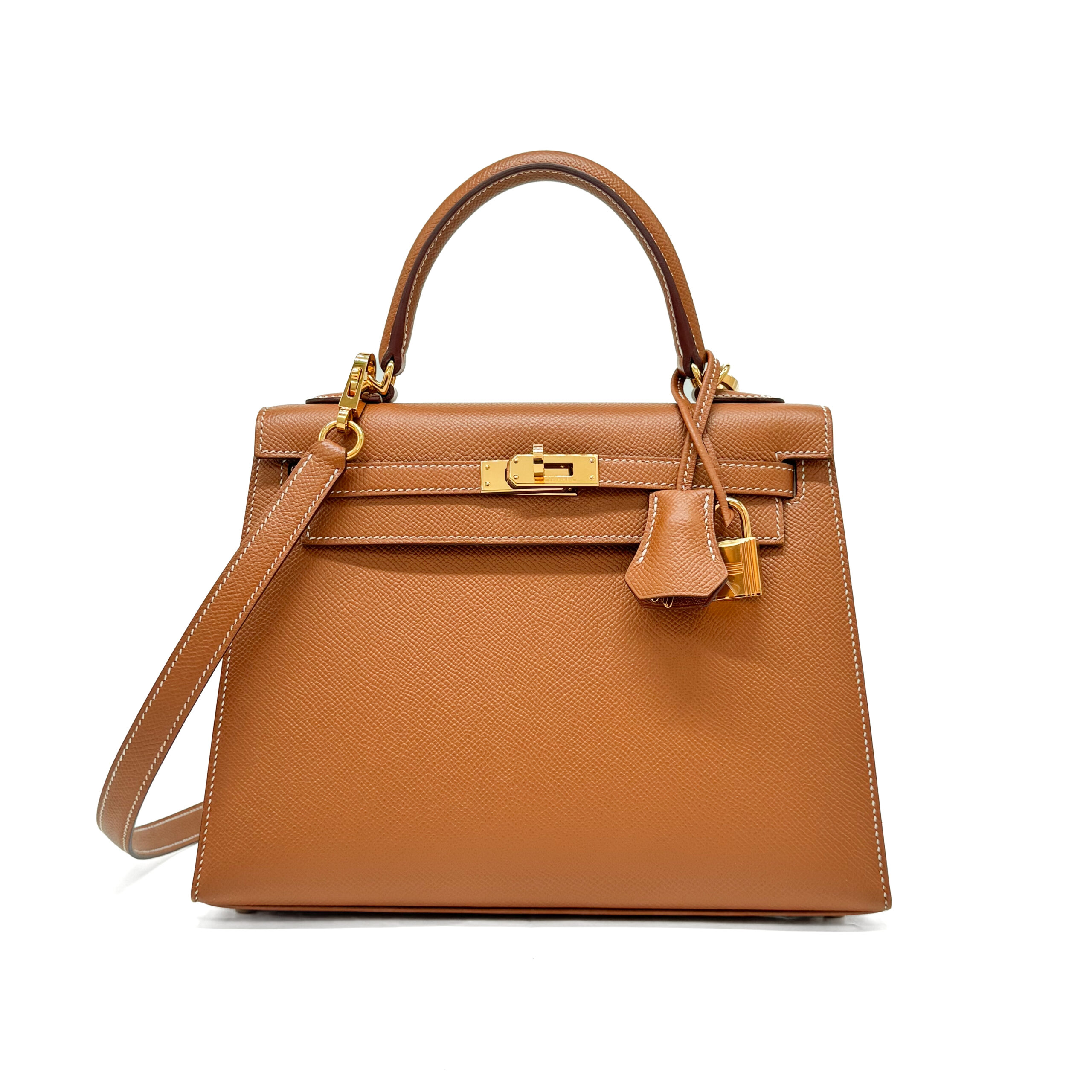 Hermès Kelly 25 Sellier has a contrast stitching and a pointed-out edge. If you are looking for a more structured Kelly, the Kelly Sellier Epsom is the one for you!