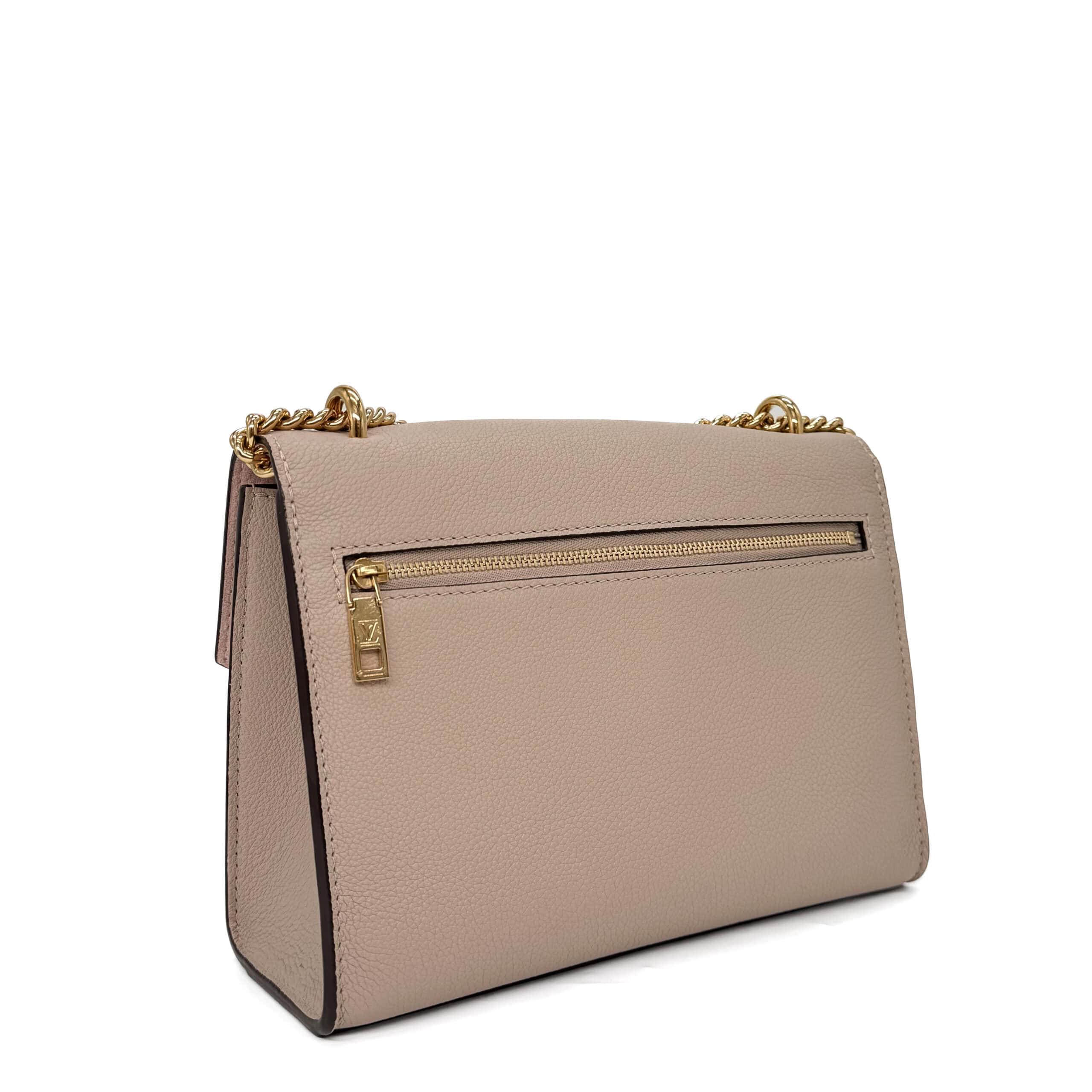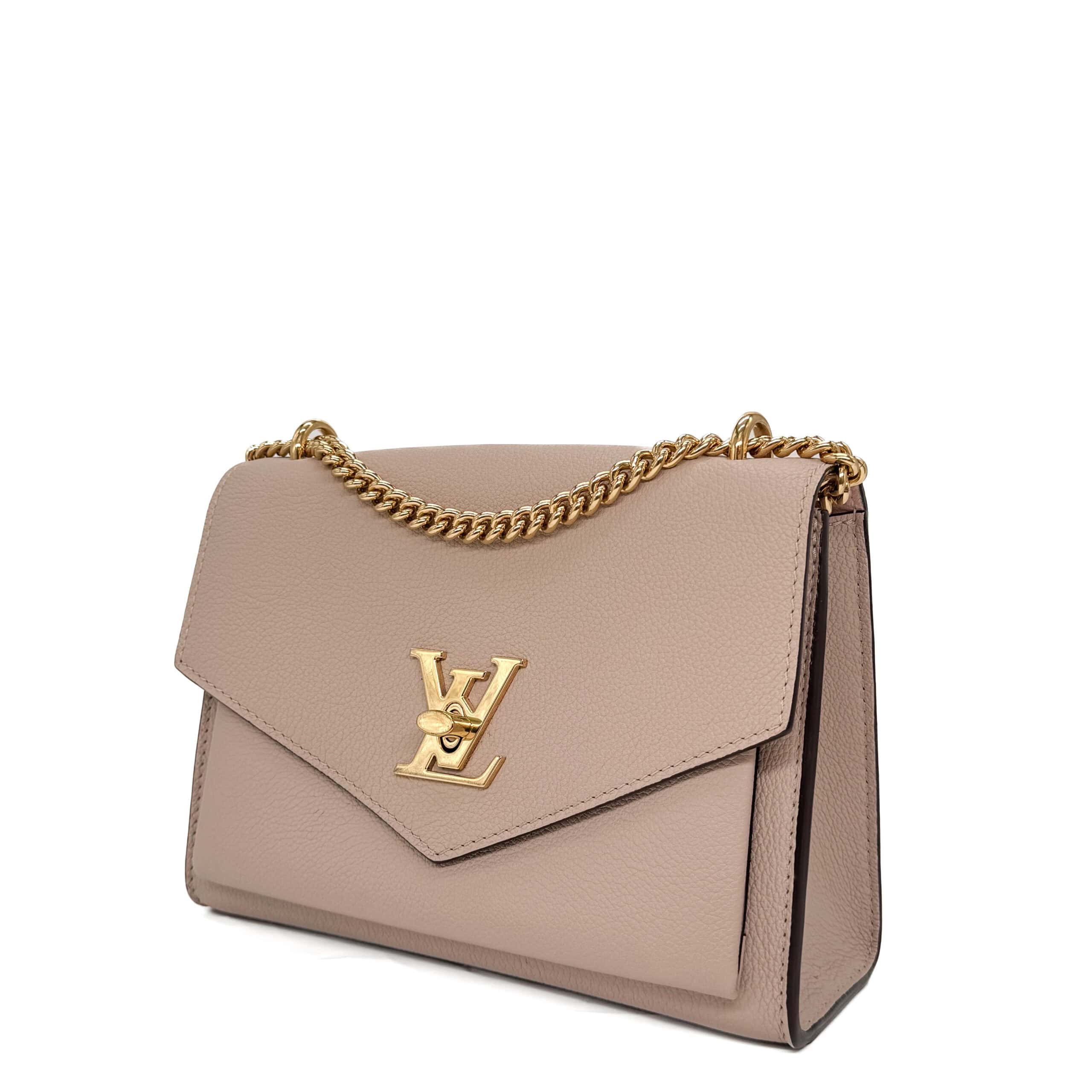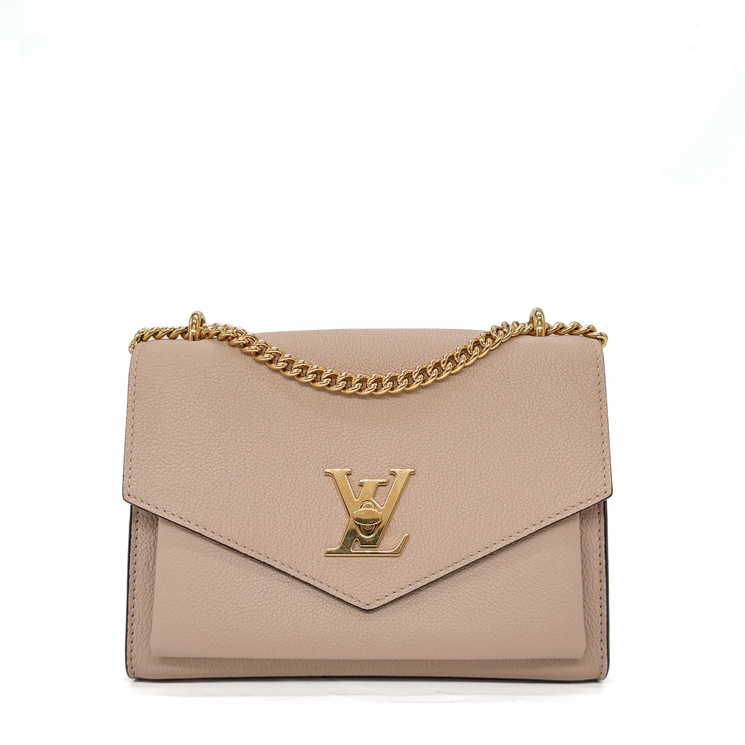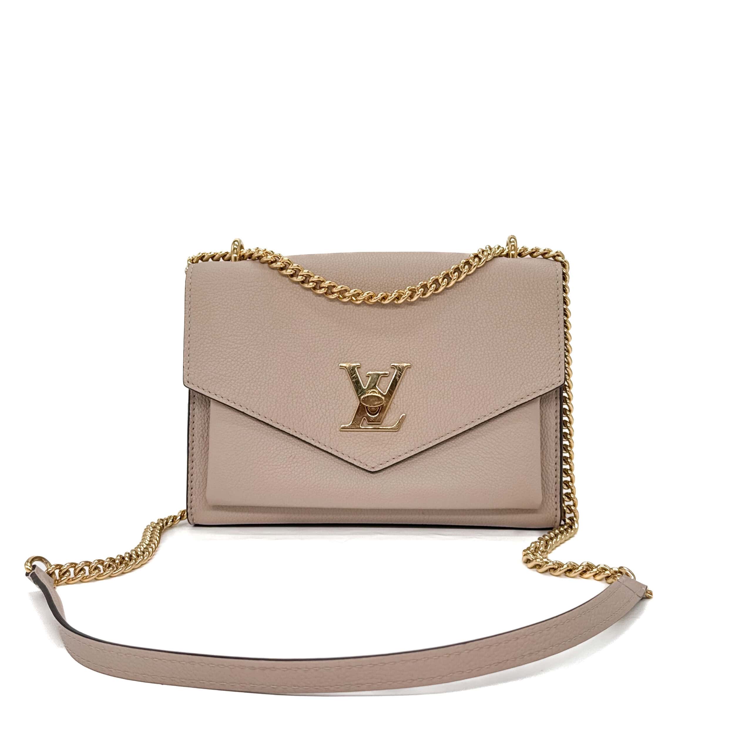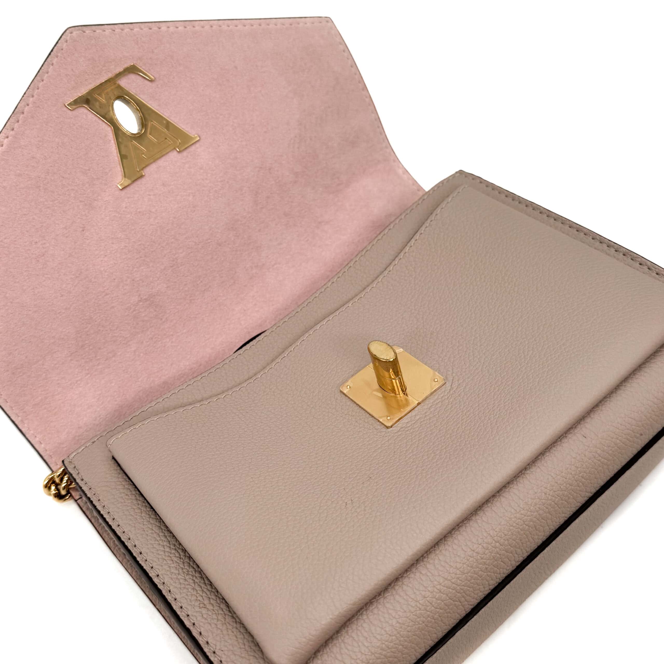 MyLockMe BB by Louis Vuitton is crafted from soft calf leather. The long chain strap can be doubled for short-shoulder carry or worn cross-body. It is finished with a gold-tone lock. Has a zipper pocket on the back.