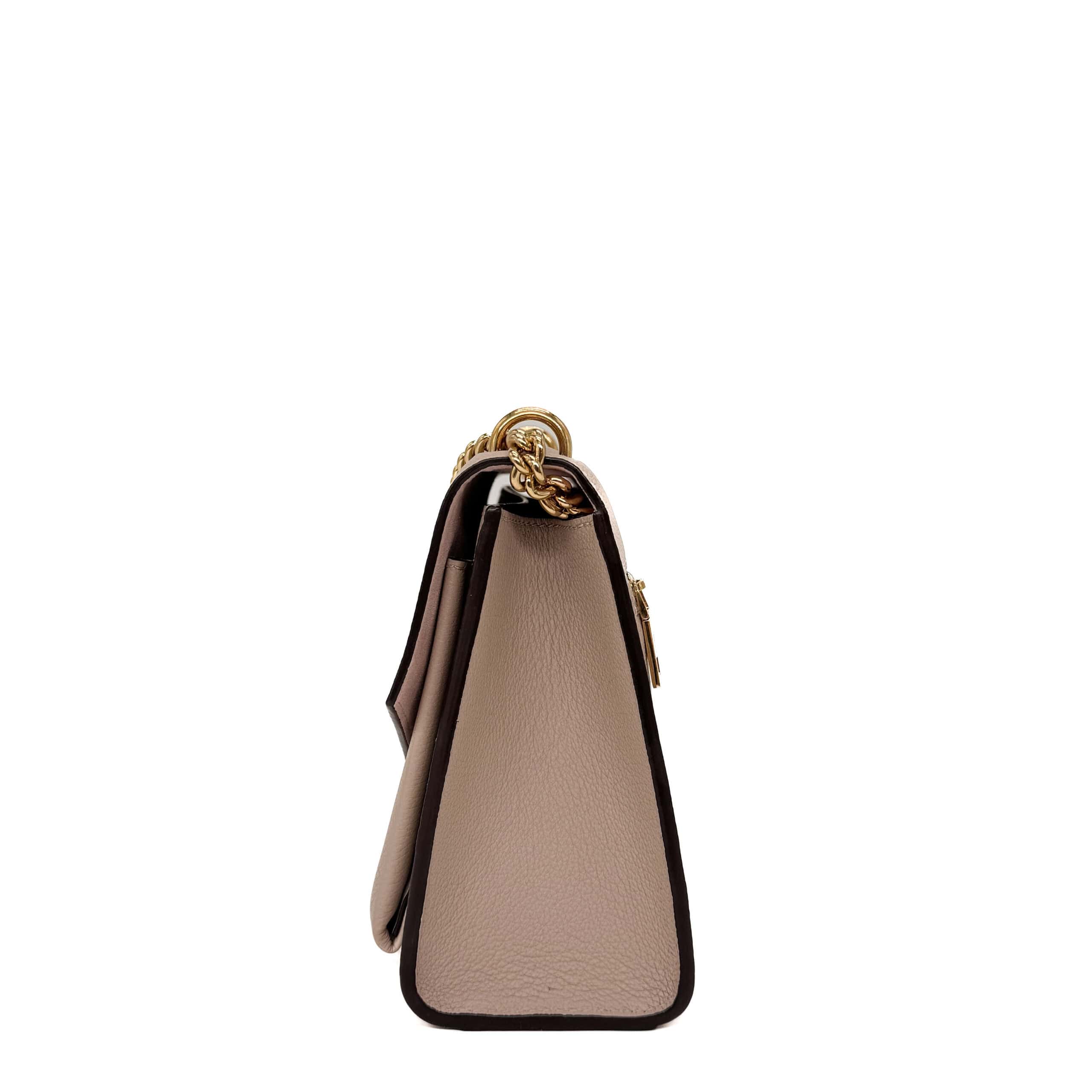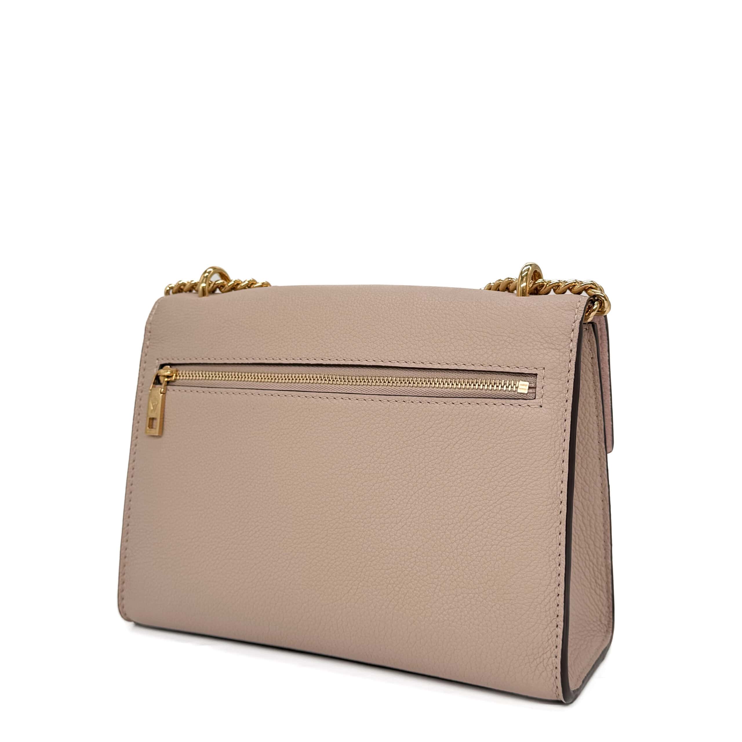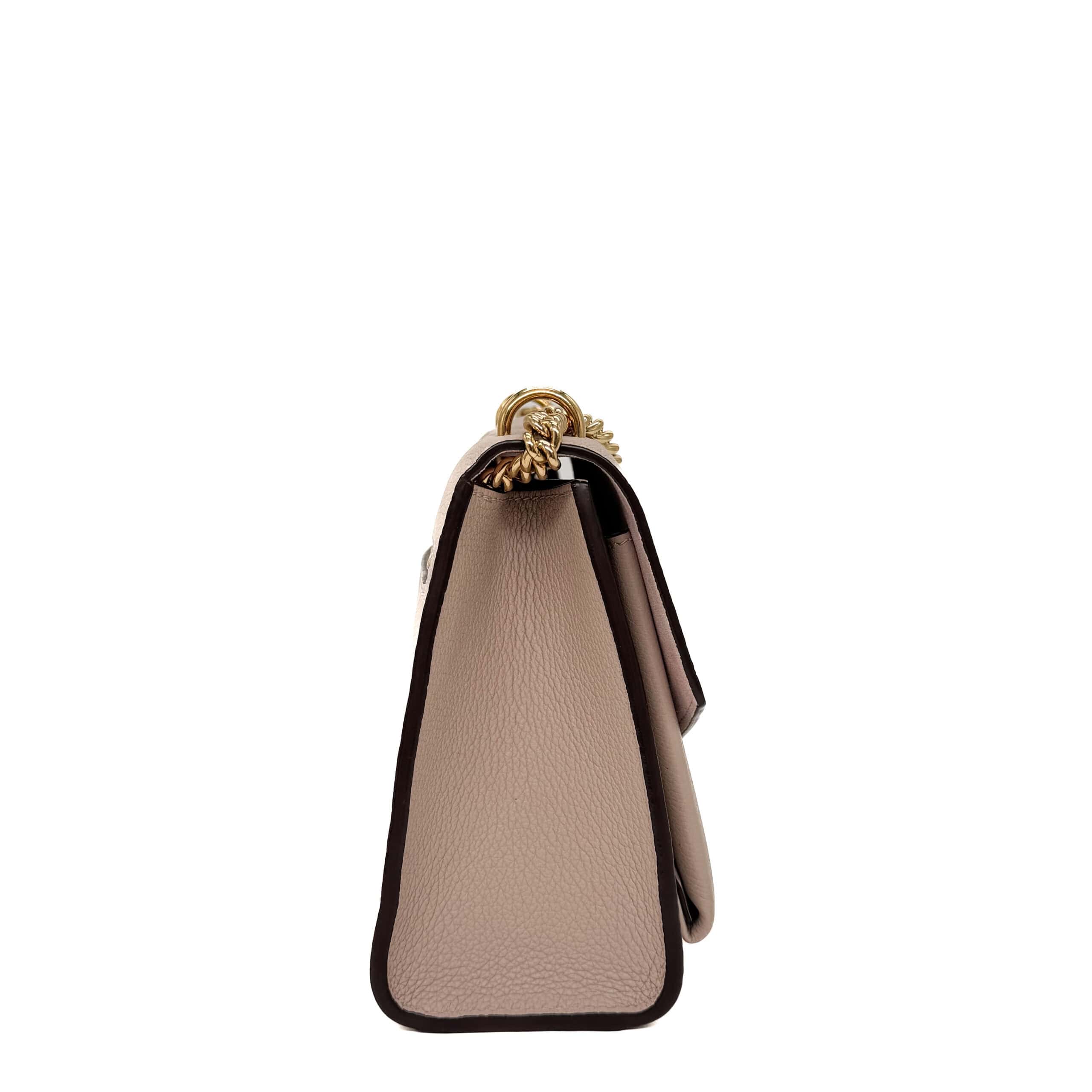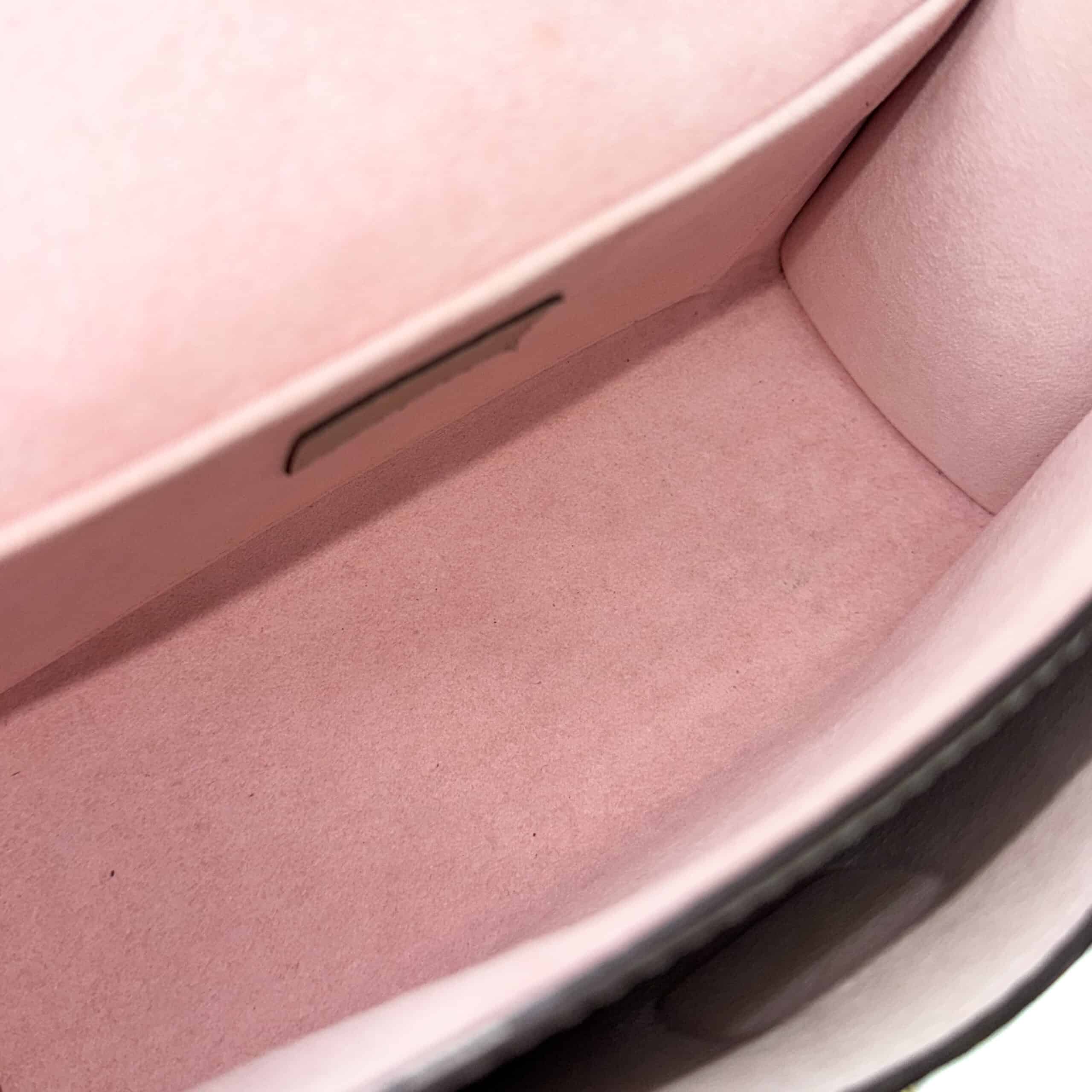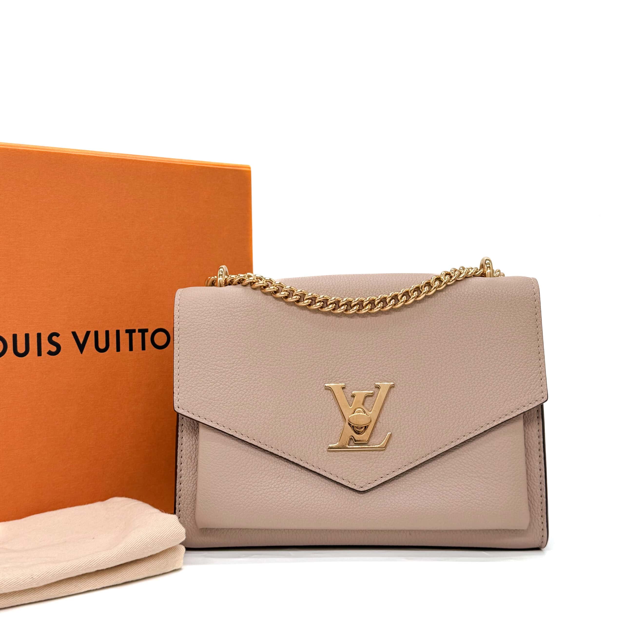 MyLockMe BB by Louis Vuitton is crafted from soft calf leather. The long chain strap can be doubled for short-shoulder carry or worn cross-body. It is finished with a gold-tone lock. Has a zipper pocket on the back.