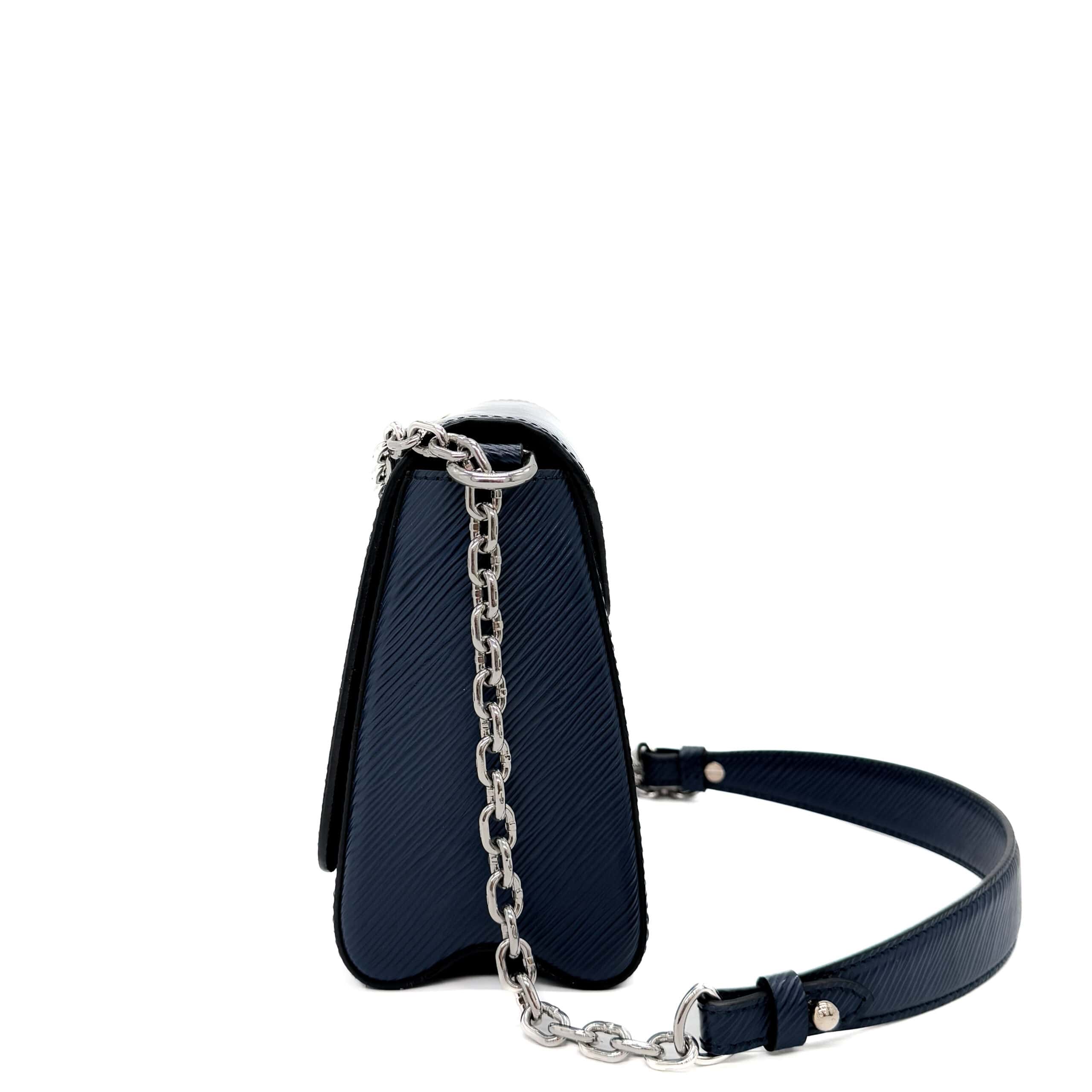 This Louis Vuitton Twist MM Epi Leather is crafted from the House’s emblematic Epi leather with an iconic LV Twist lock in silver. This beautifully made bag can be easily dressed up or down, becoming your day-to-evening companion. The sliding chain strap can be doubled for shoulder carry or lengthened for cross-body wear.